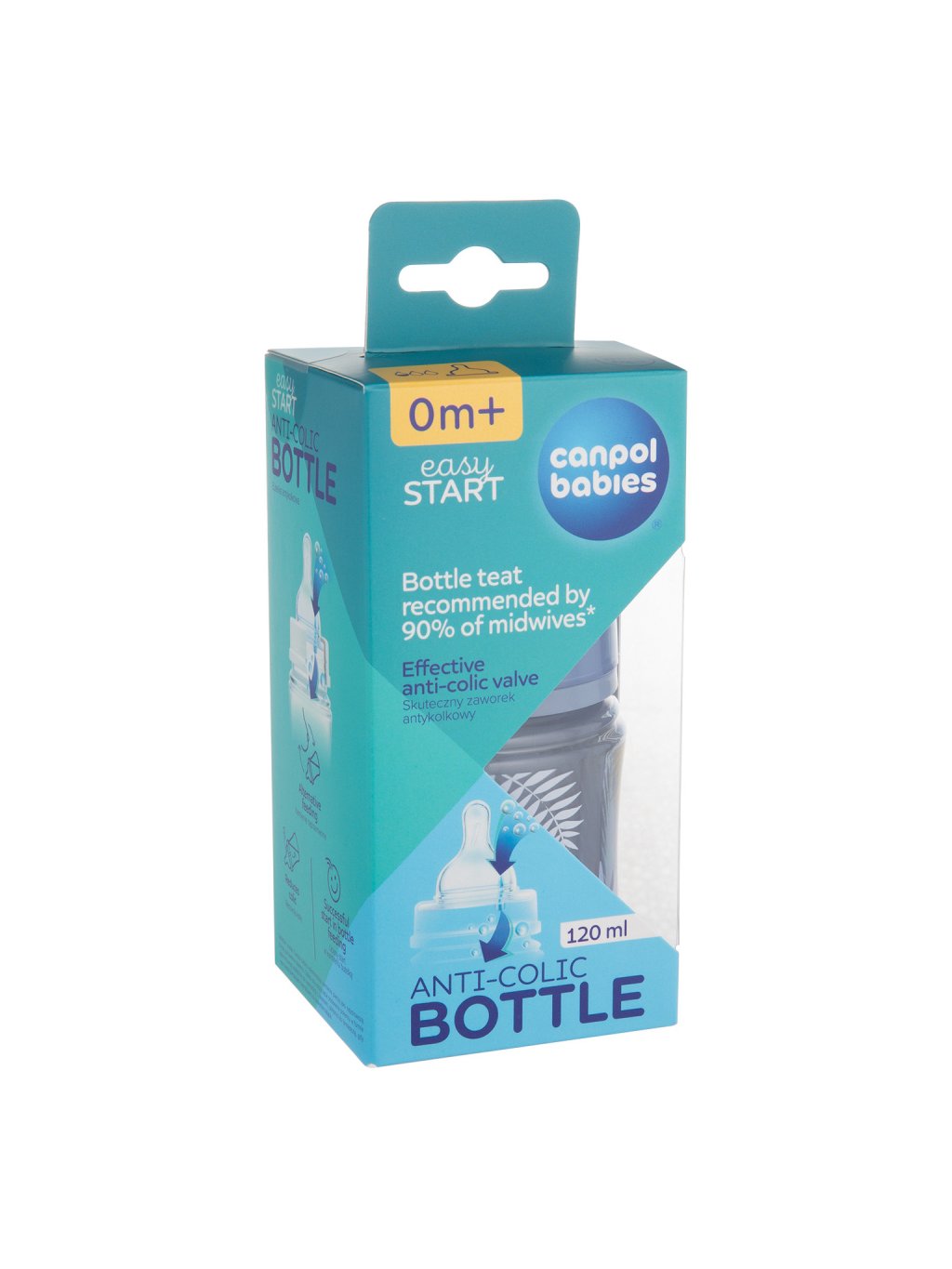 Antikoliková lahvička Canpol babies EasyStart byla vytvořena s ohledem na spokojené bříško vašeho miminka. Speciální antikolikový ventil zabraňuje hromadění vzduchových bublin v mléce, čaji nebo kaši, což v kombinaci se správně zvolenou polohou krmení umožňuje účinně eliminovat břišní diskomfort vašeho dítěte související s kolikou a plynatostí.