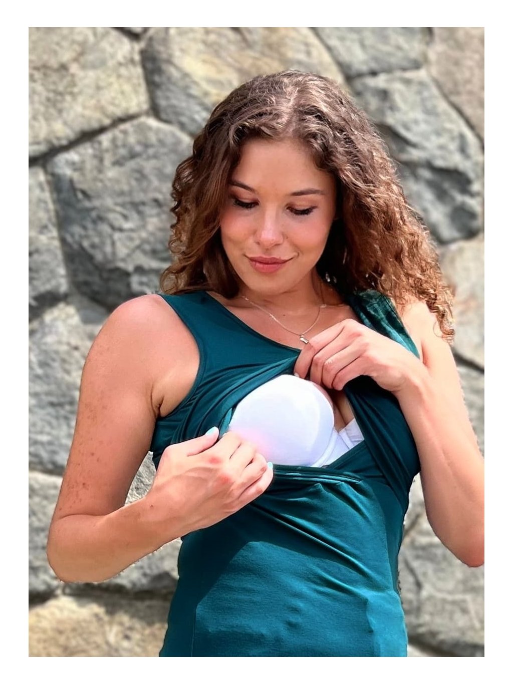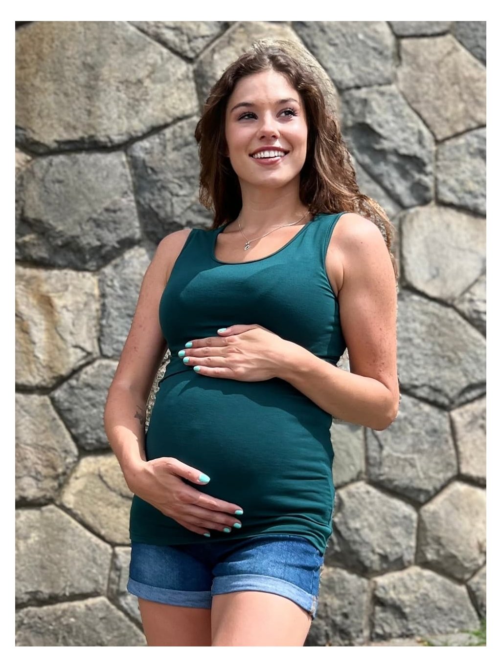 Bambusové těhotenské a kojící tílko Abby 3v1 - smaragdově zelené