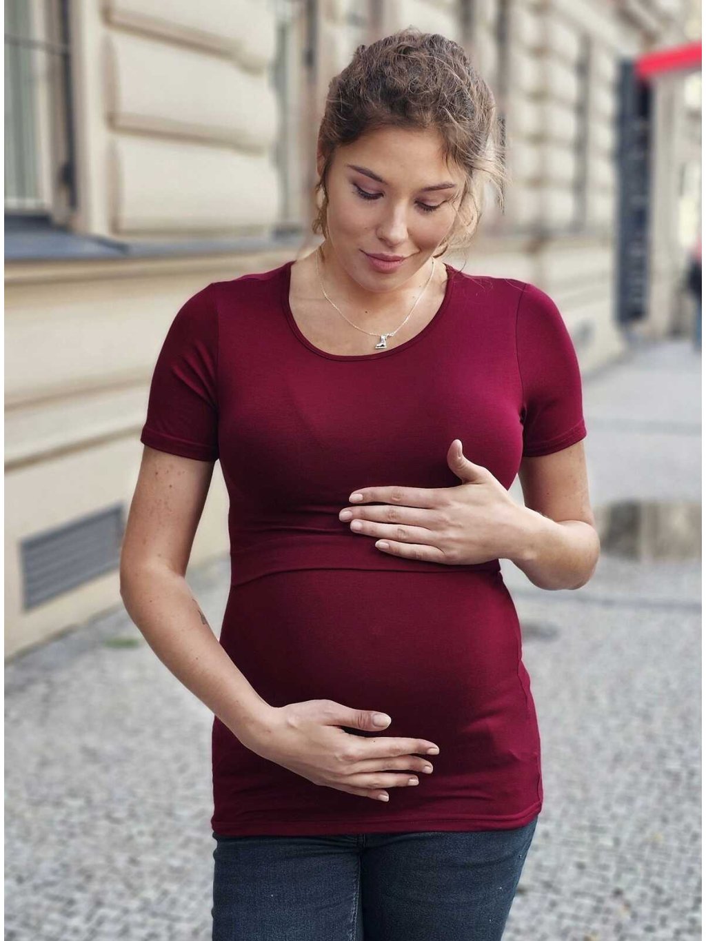 Bambusové těhotenské a kojicí tričko Abby 3v1 – odstín red wine