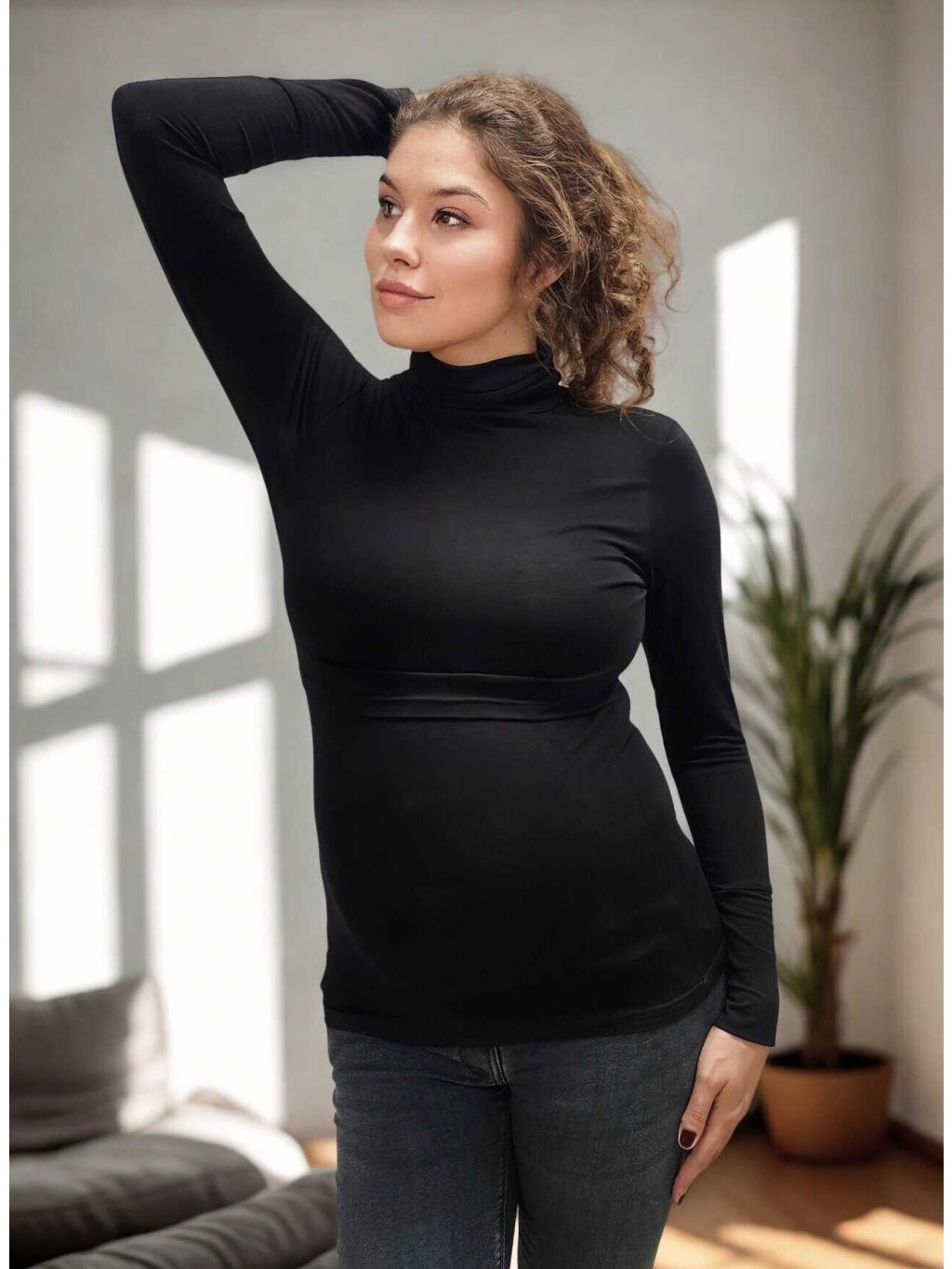 Bambusové těhotenské a kojicí tričko Abby 3v1 s roláčkem – černé, dlouhý rukáv