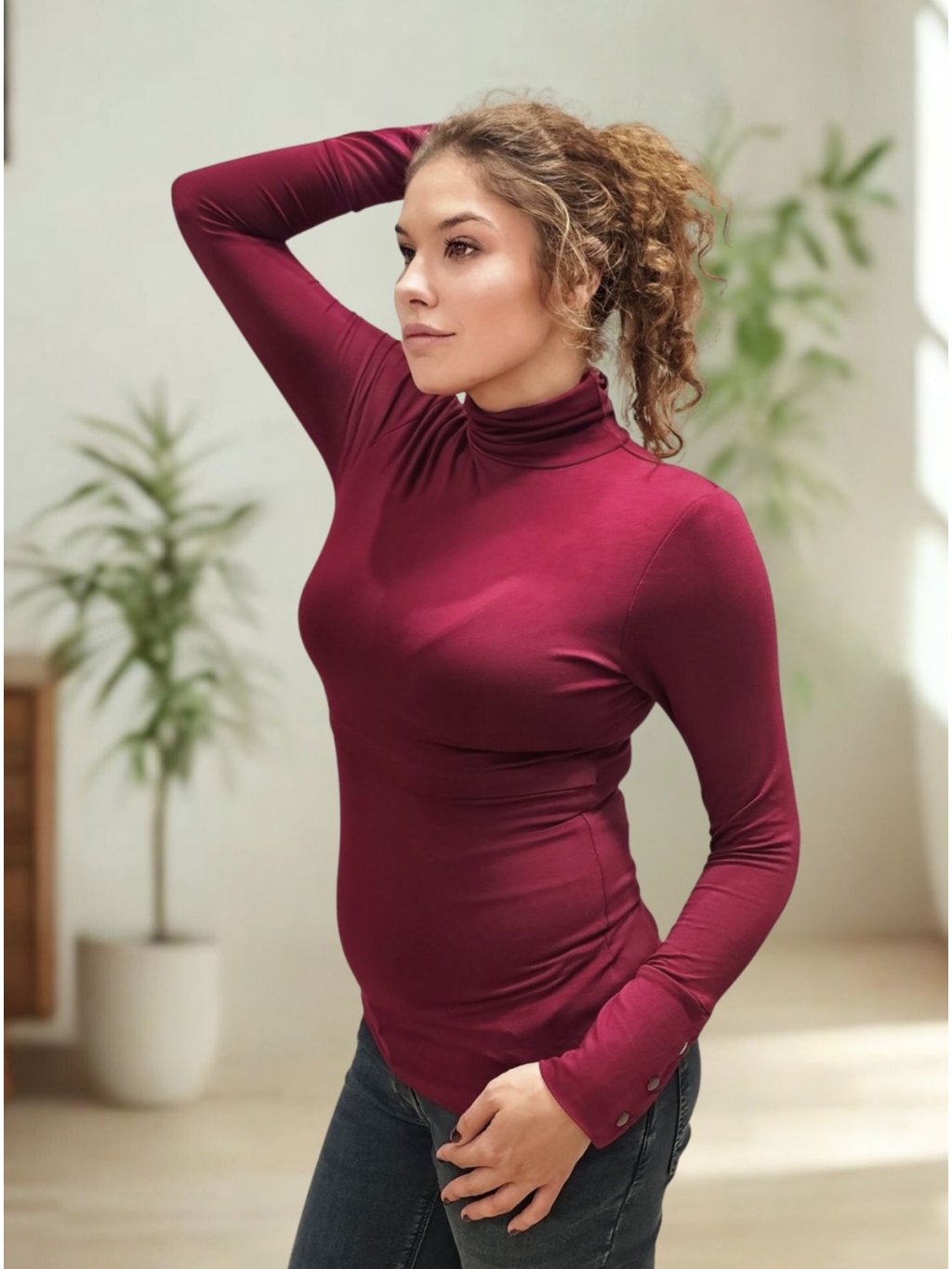 Bambusové těhotenské a kojicí tričko Abby 3v1 s roláčkem – red wine, dlouhý rukáv
