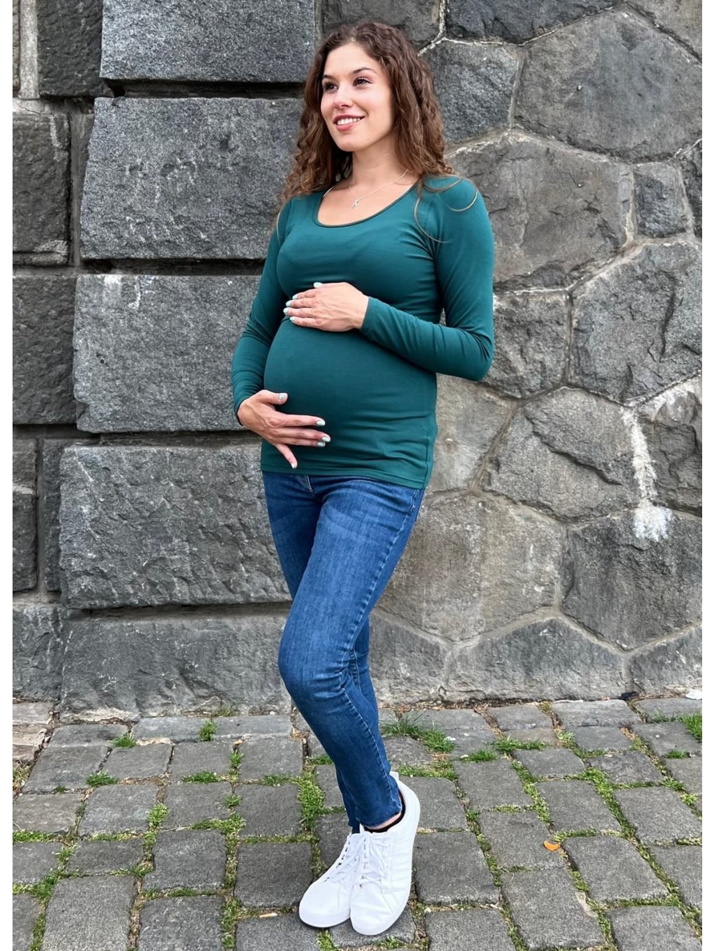 Bambusové těhotenské a kojící tričko Abby 3v1 - smaragdově zelené, dlouhý rukáv