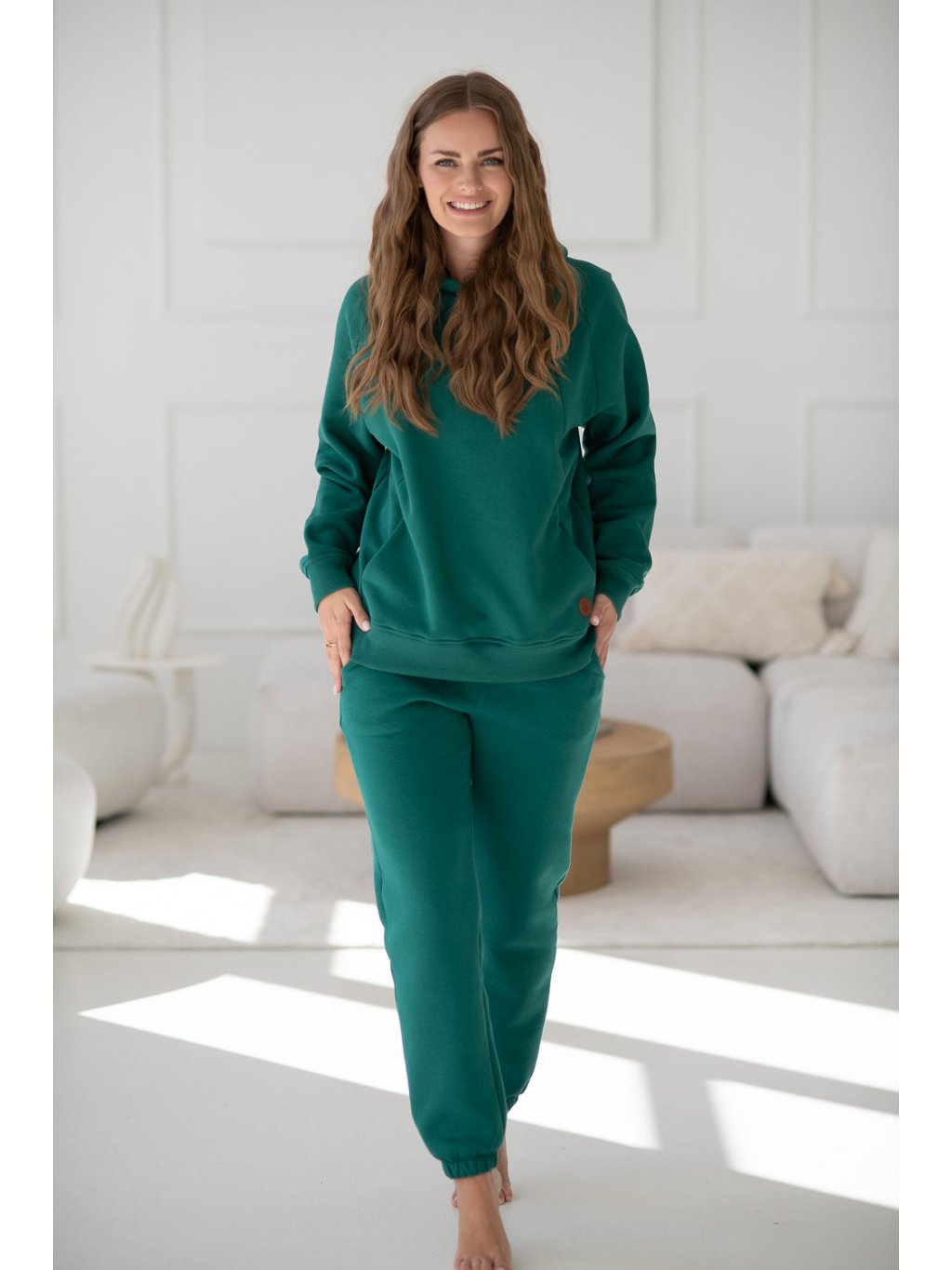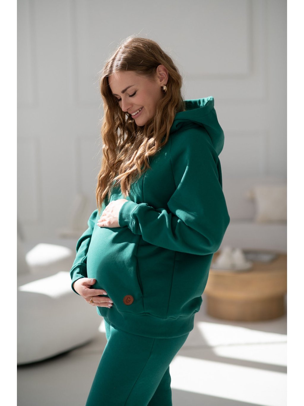 Zateplená těhotenská a kojicí mikina Motherhood 3v1 – láhvově zelená, bavlna