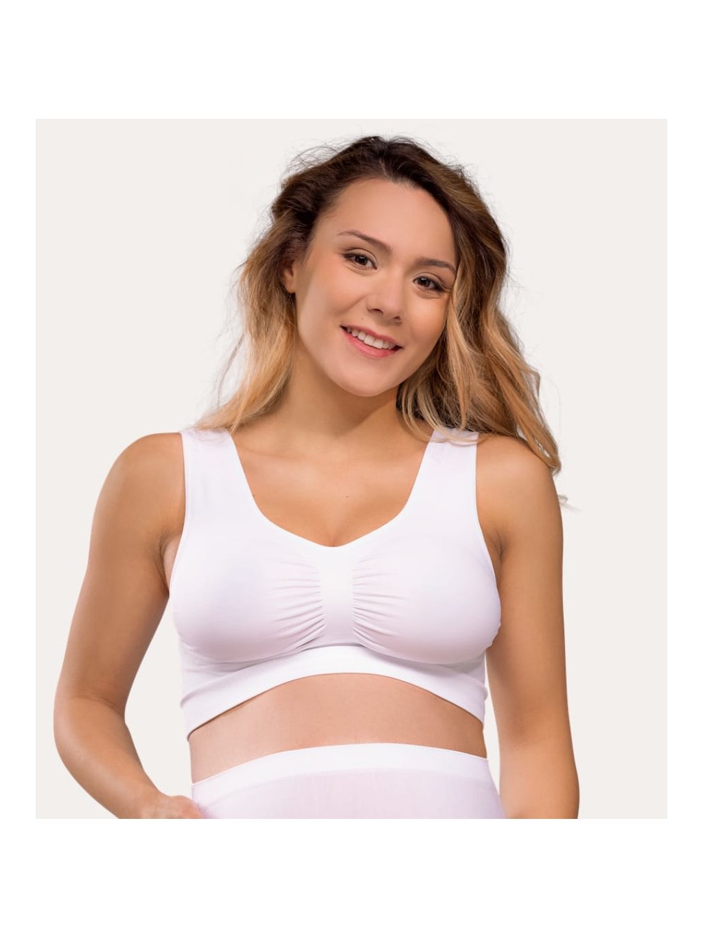 Bezešvá těhotenská podprsenka bez kostic – bílá