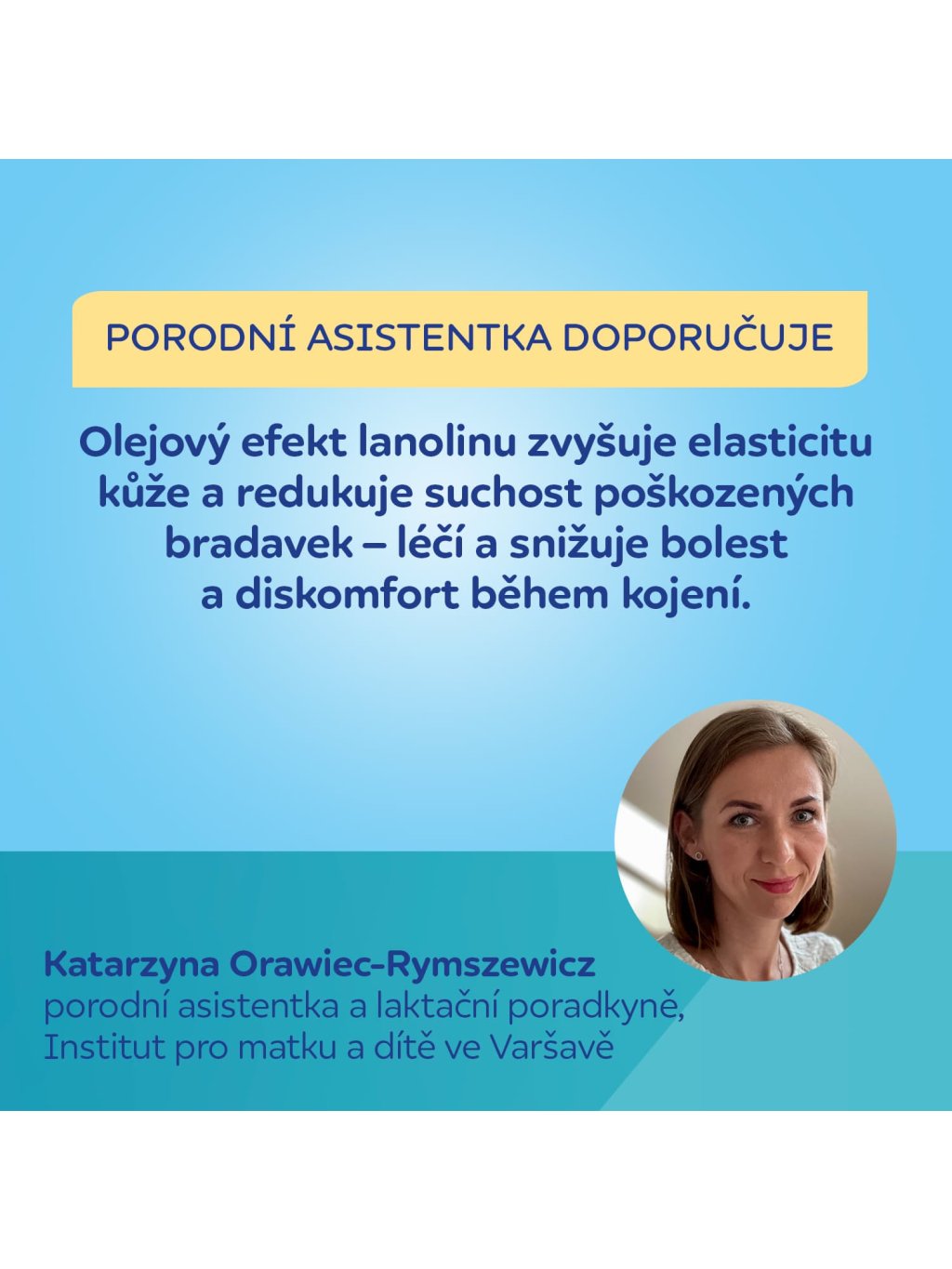 Podporuje regeneraci pokožky podrážděných bradavek.