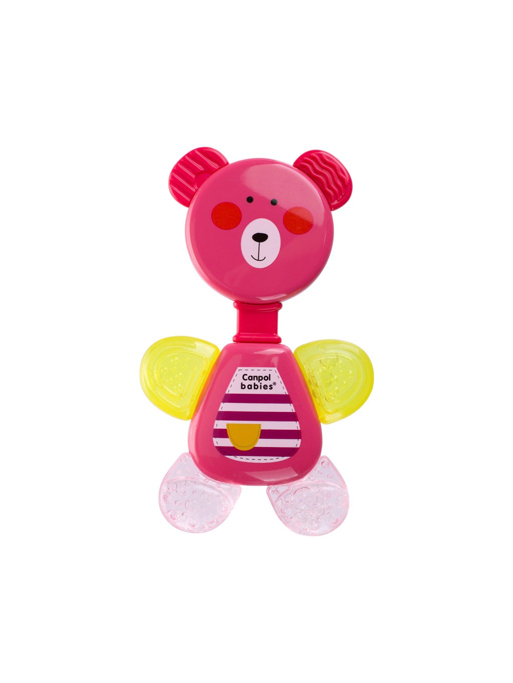 Barevné chrastítko Medvídek pro období prořezávání zoubků je lehké a praktické – snadno se drží v malých ručičkách. Jeho zaoblené tvary jsou bezpečné bez ostrých hran. Když se s ním zatřese, chrastítko udělá zajímavý zvuk. Má jemné kousací prvky, které uklidňují děťátko, kterému se prořezávají zoubky. Před podáním děťátku kousátko ochlaďte v chladničce. Snadno se udržuje čisté. Navrženo pro děti od 3 měsíců +.