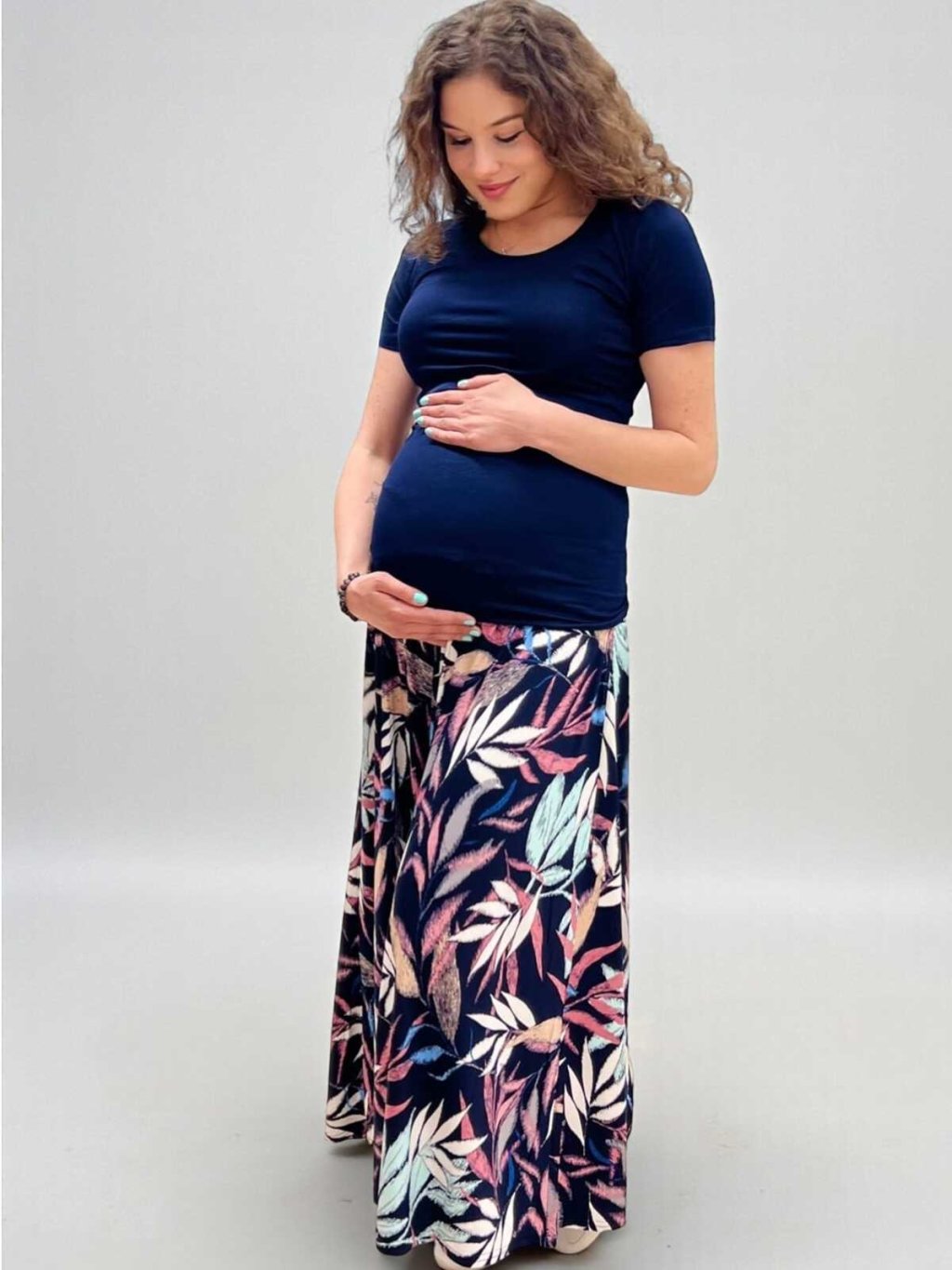 Dlouhá těhotenská sukně Zoe - tmavě modrá s barevnými listy