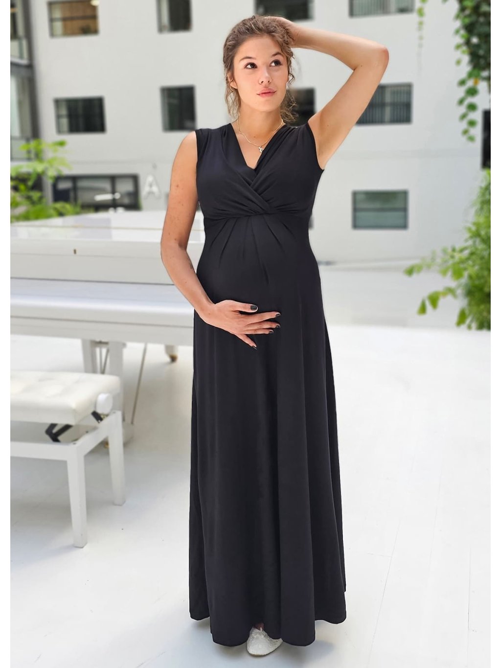 Dlouhé těhotenské a kojící šaty 3v1 Annie černé