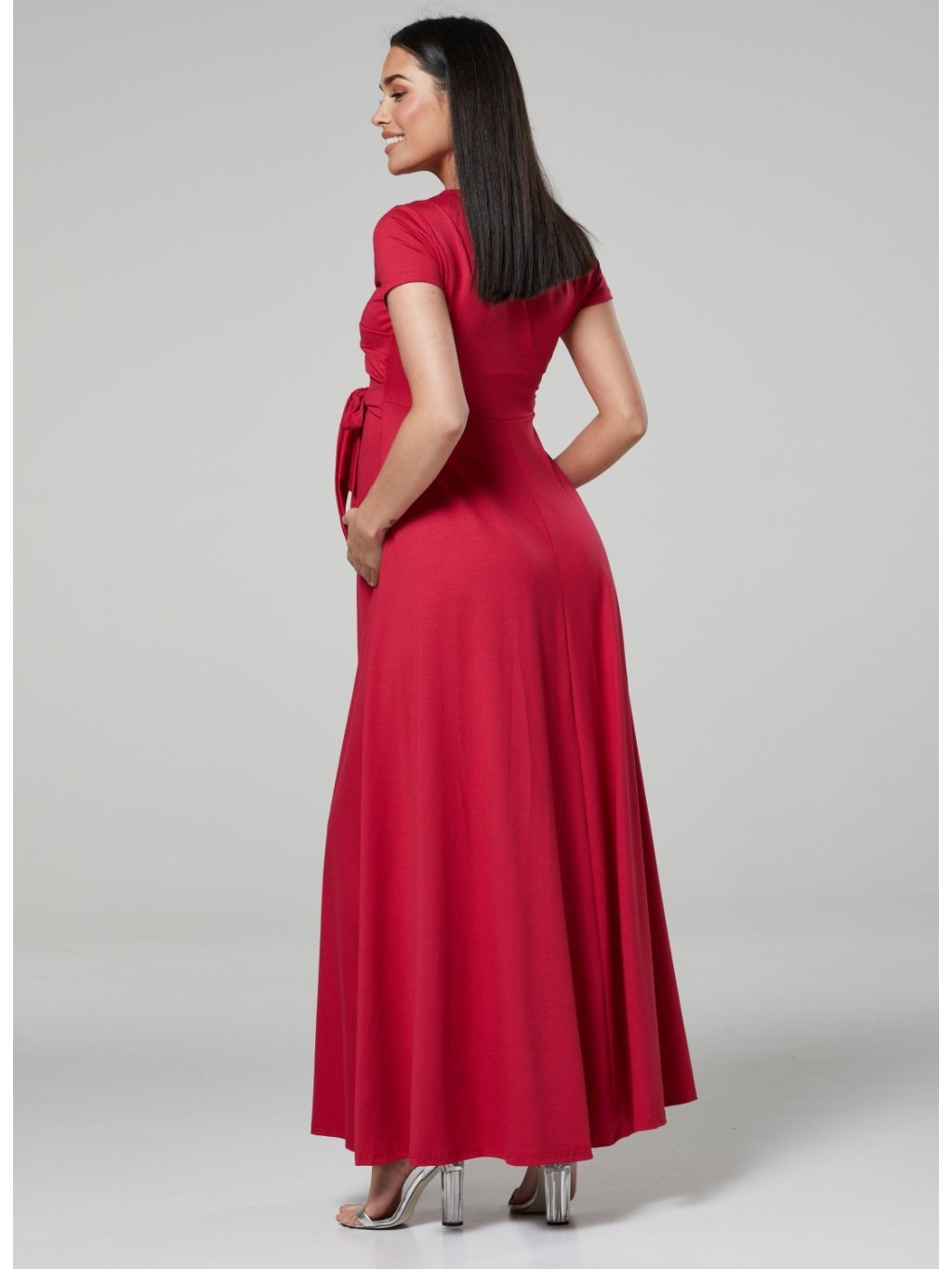 Dlouhé těhotenské a kojící šaty 3v1 Shine malinové