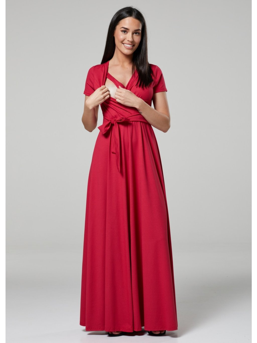 Dlouhé těhotenské a kojící šaty s elegantním uvazováním, které jsou skvělou volbou pro nastávající a kojící maminky. Jsou vyrobeny z velmi pružného...
