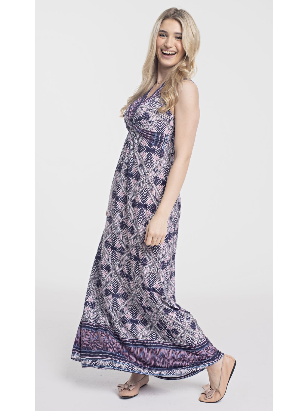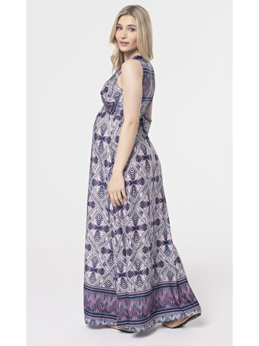 Dlouhé těhotenské šaty 2v1 Debore fialové vzorované