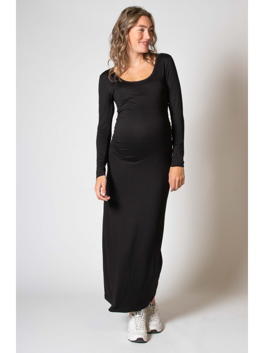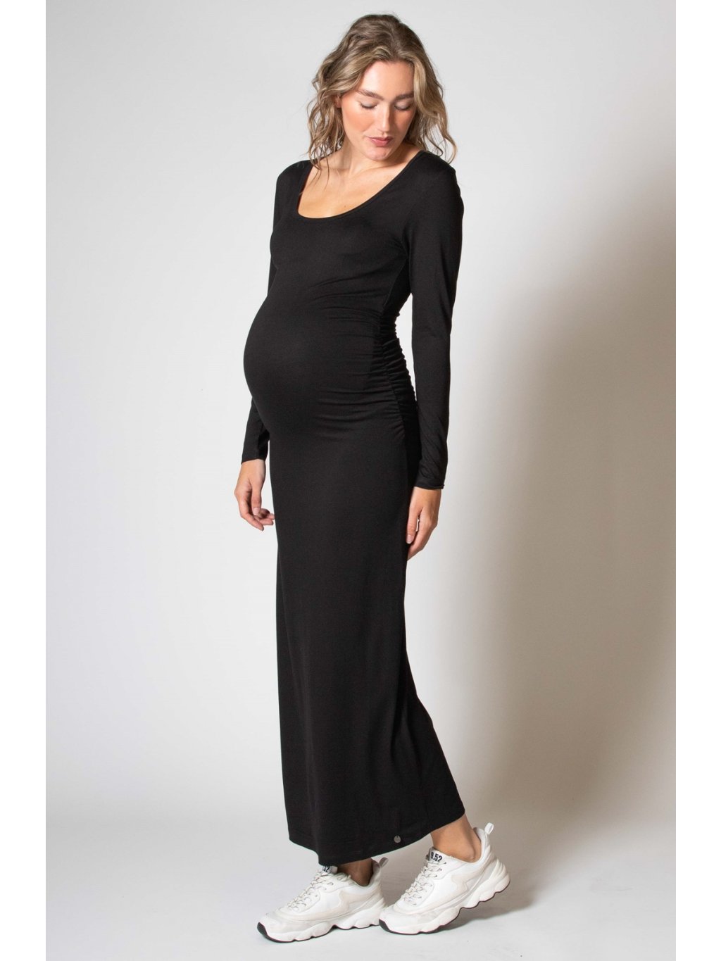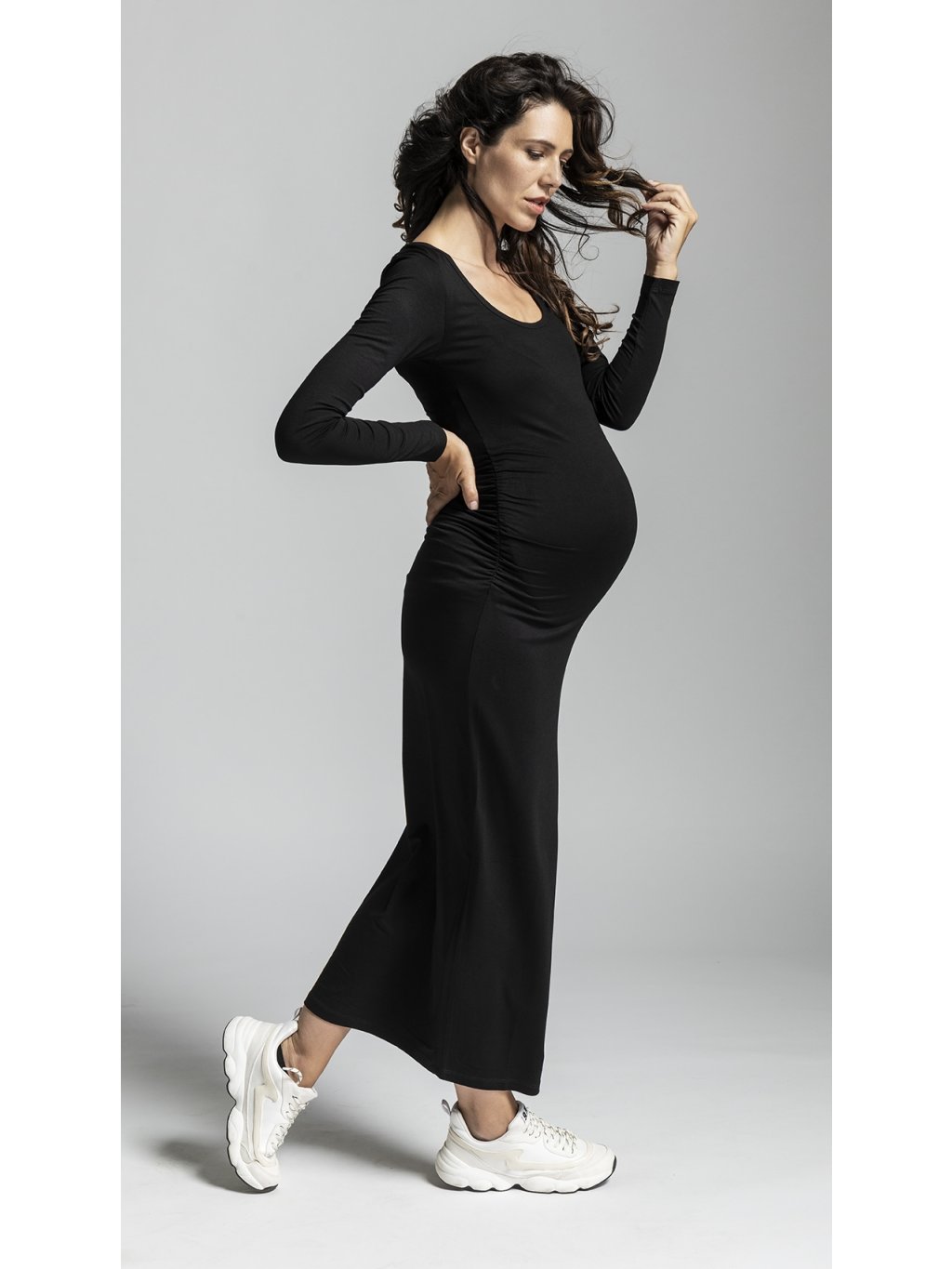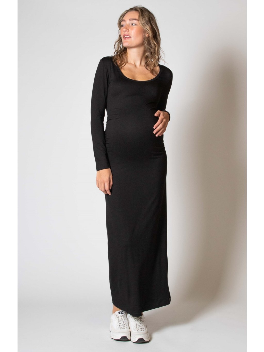 Dlouhé těhotenské šaty černé Ecovero dlouhý rukáv