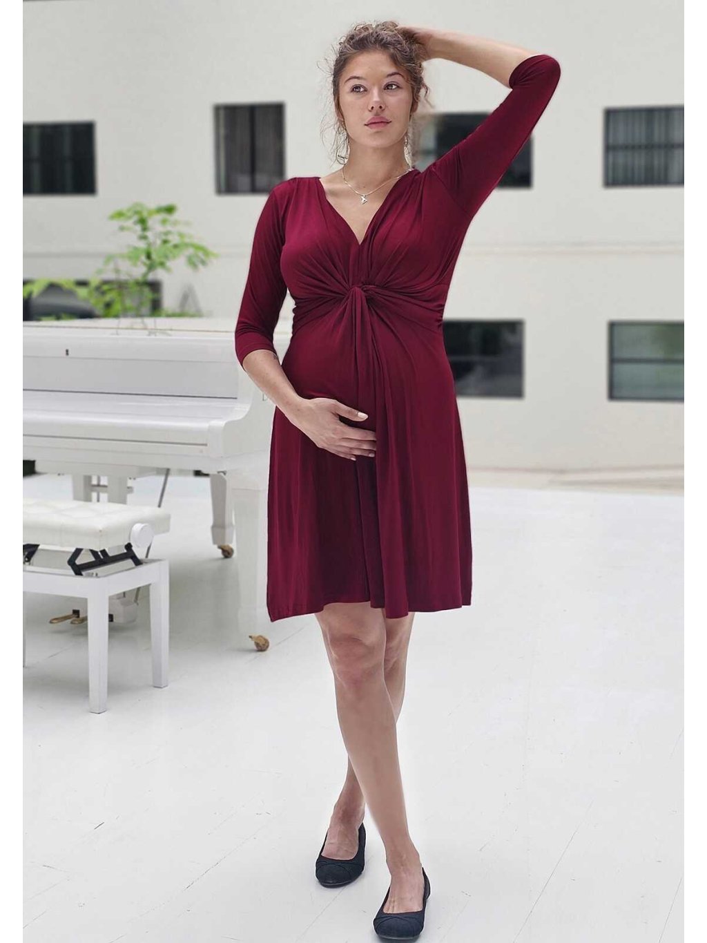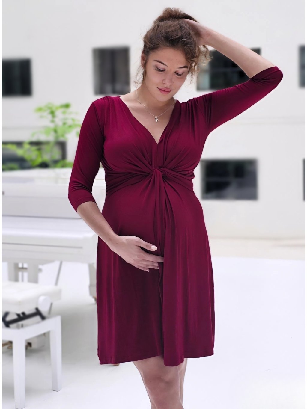 Nádherné a elegantní těhotenské šaty Vivianne v odstínu red wine jsou navrženy tak, aby spojily styl, funkčnost a maximální pohodlí. Díky uzlovému střihu se krásně přizpůsobí rostoucímu bříšku, a zároveň zůstávají elegantní i po porodu.