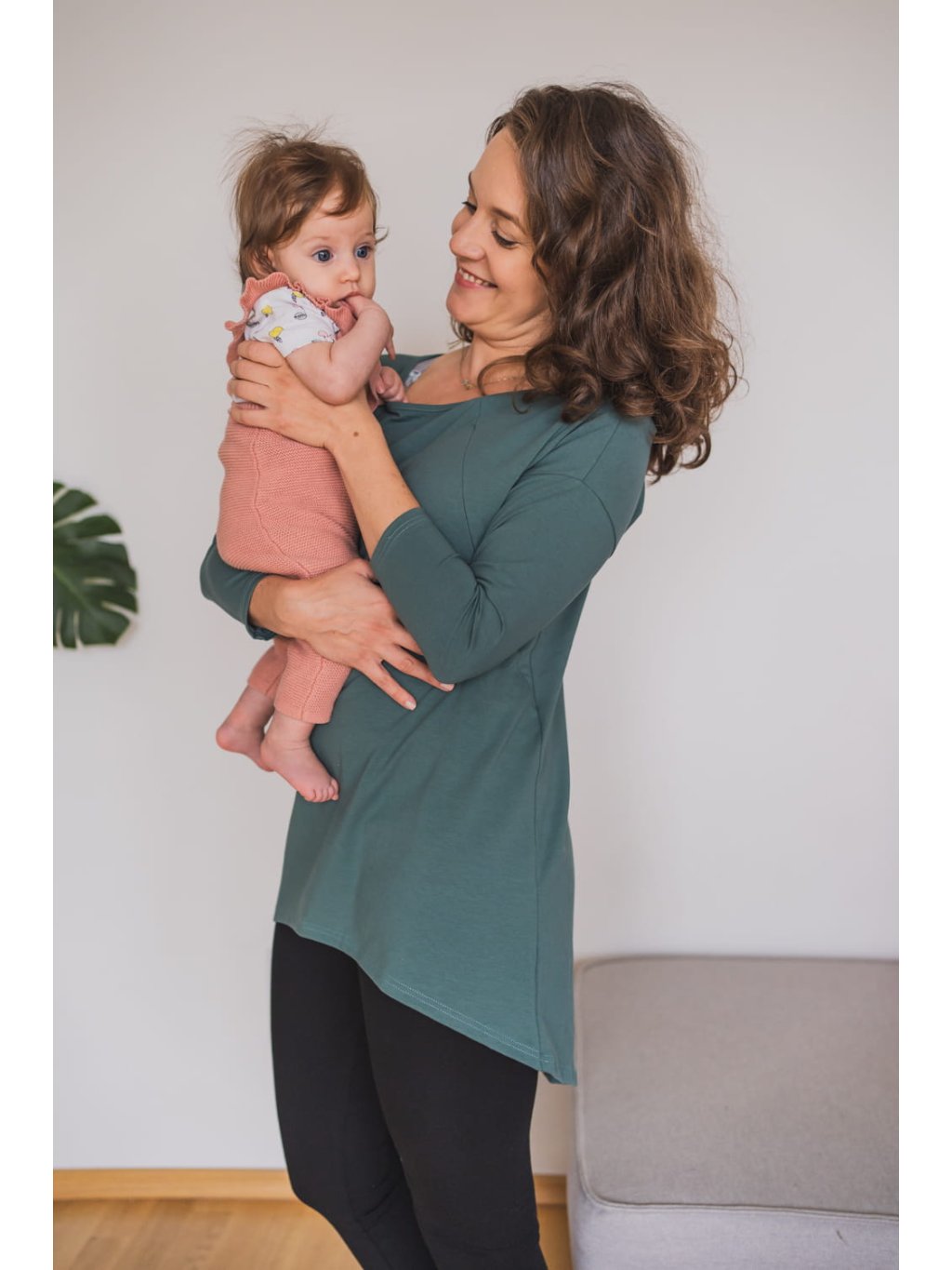 Elegantní těhotenská a kojící blůza Mommy 3v1 - mořská šalvěj, bavlněná