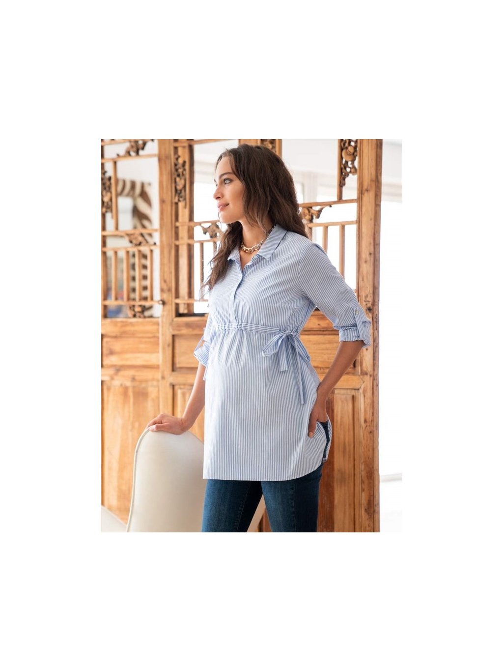 Elegantní těhotenská a kojící košile 3v1 Larry s proužky bavlněná