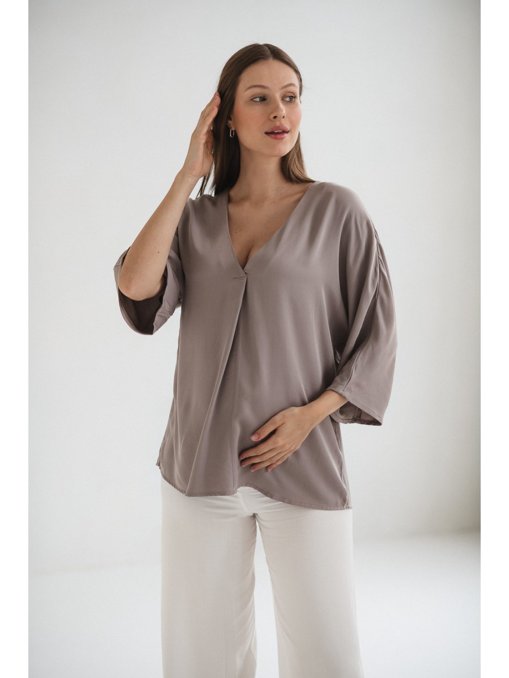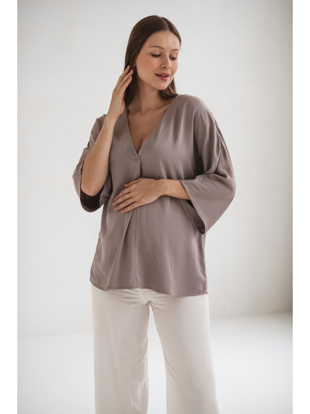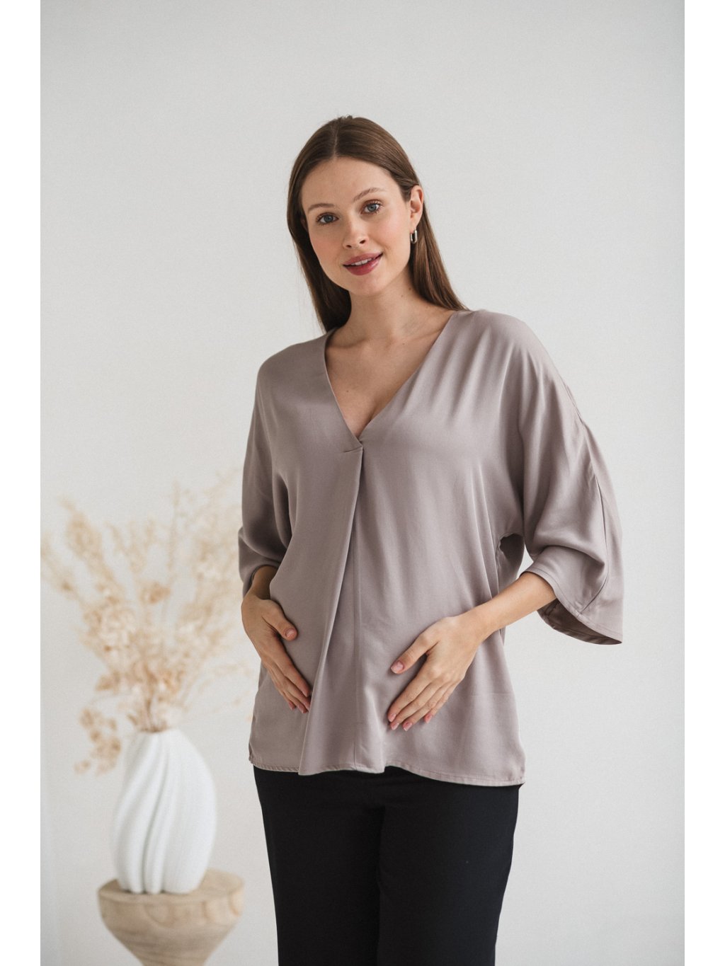 Elegantní těhotenská halenka Mamafullness - béžová taupe