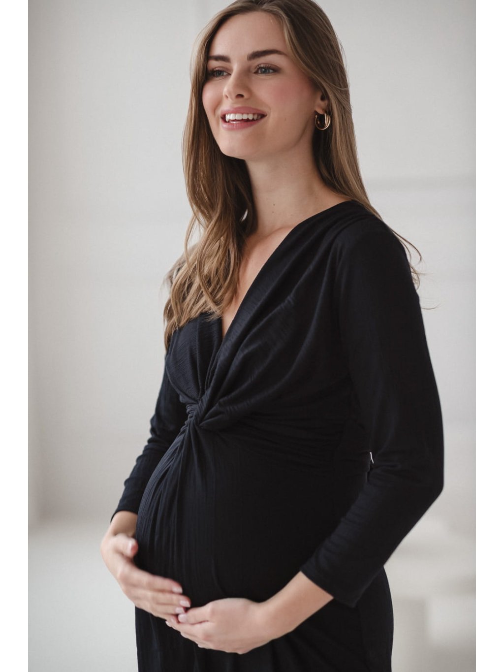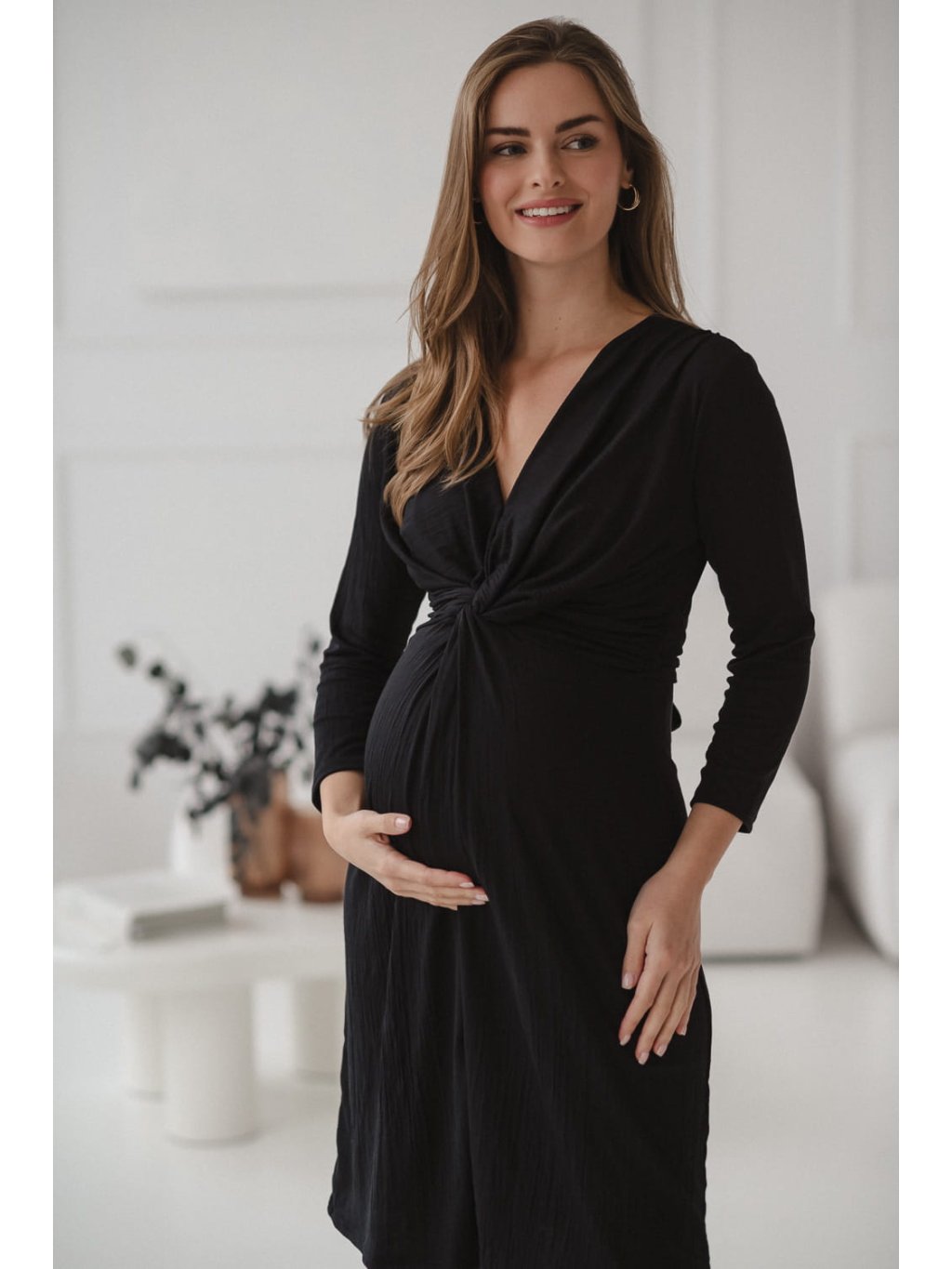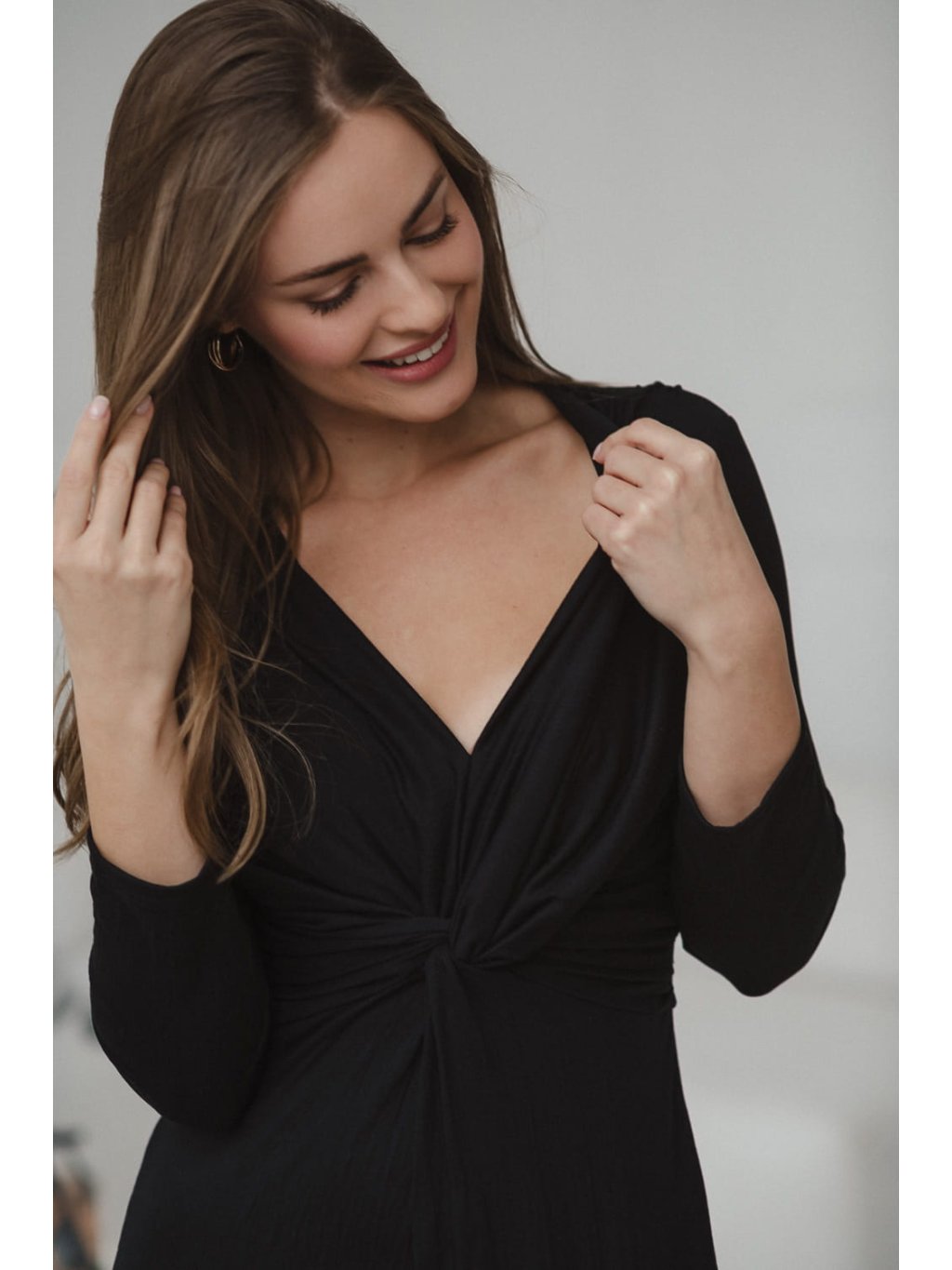 Elegantní těhotenské a kojicí šaty 3v1 Loop – černé, 3/4 rukáv