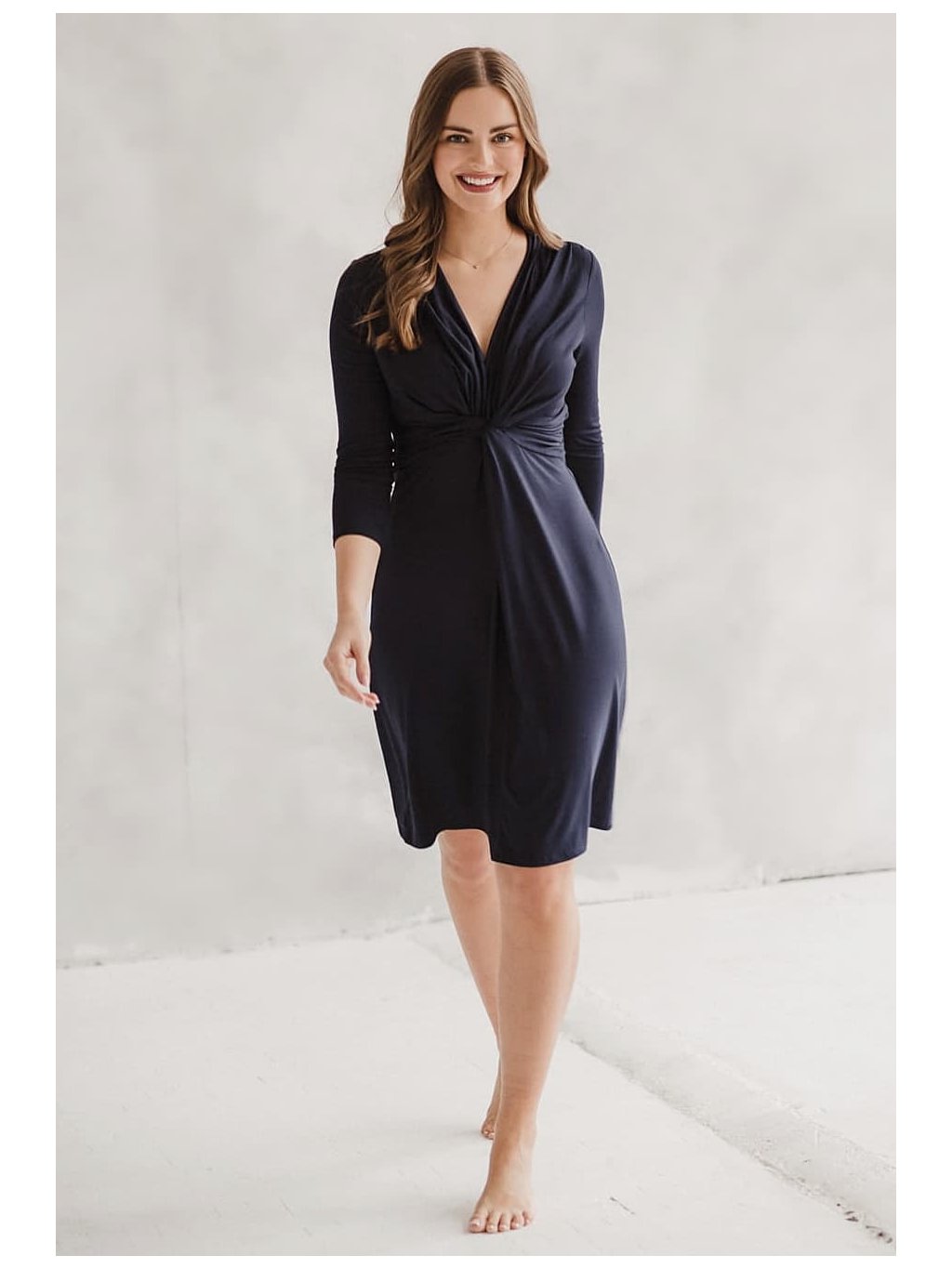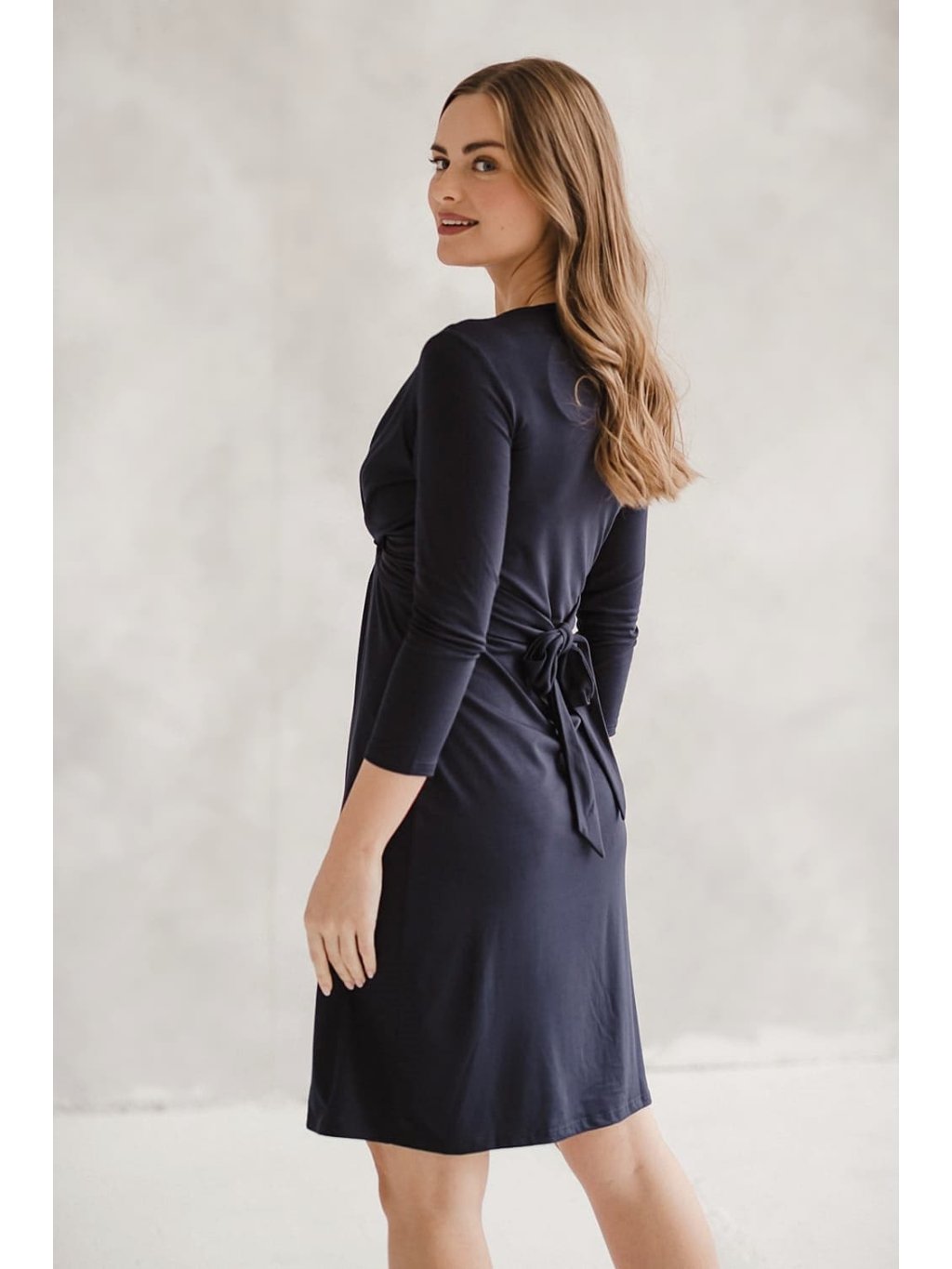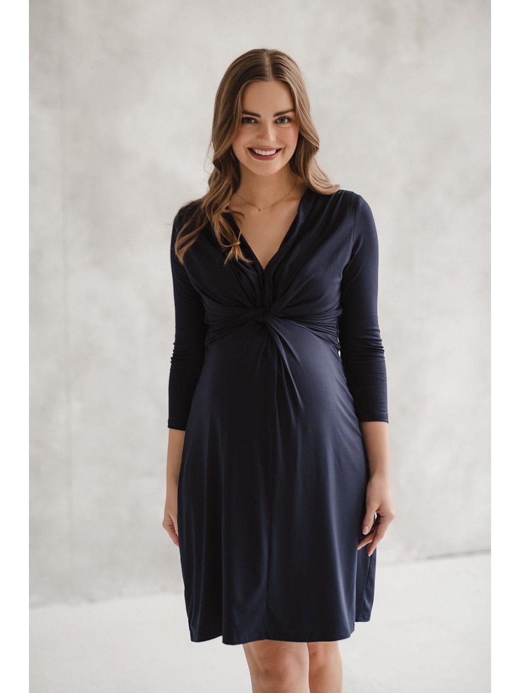Elegantní těhotenské a kojicí šaty 3v1 Loop – tmavě modré, 3/4 rukáv
