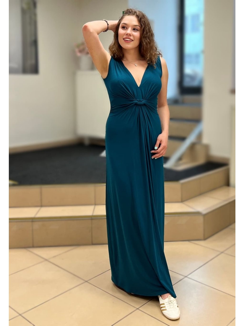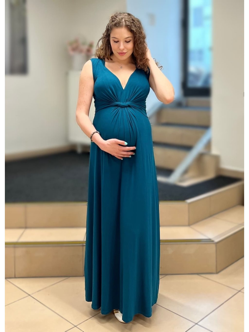 Elegantní těhotenské a kojící šaty s předním uzlem 3v1 Jo smaragdové MAXI