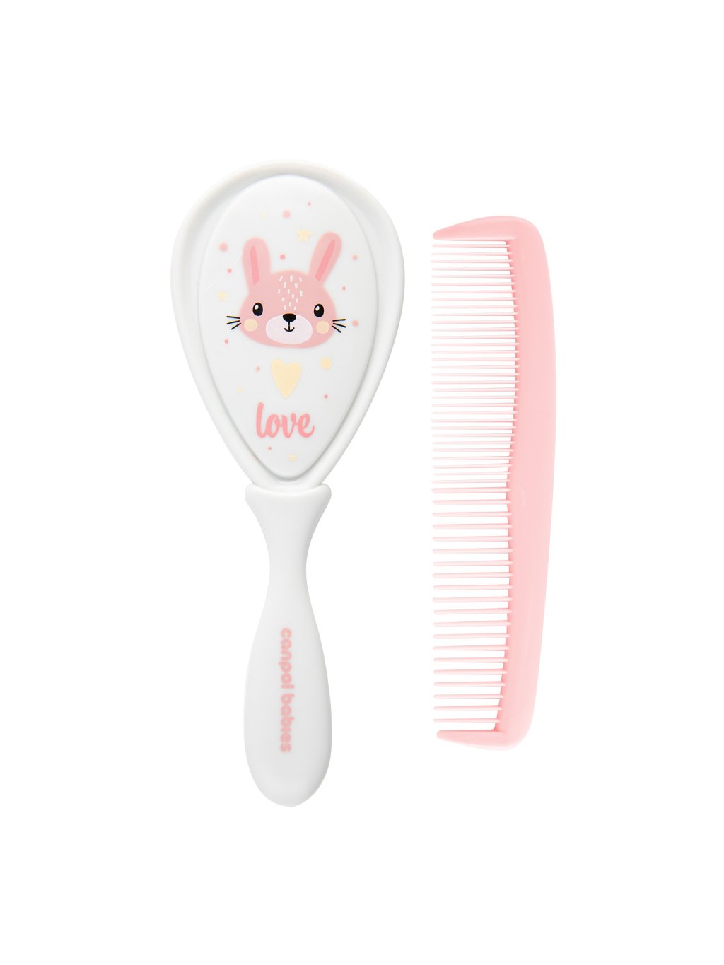 Kartáč na vlasy s hřebenem pro každodenní péči o vlasy děťátka. Hřeben má zaoblené zuby, které nedráždí citlivou pokožku. Kartáč s měkkými umělými štětinami jemně masíruje hlavu děťátka, aniž by mu elektrizoval vlasy. Sada je dostupná ve dvou variantách.