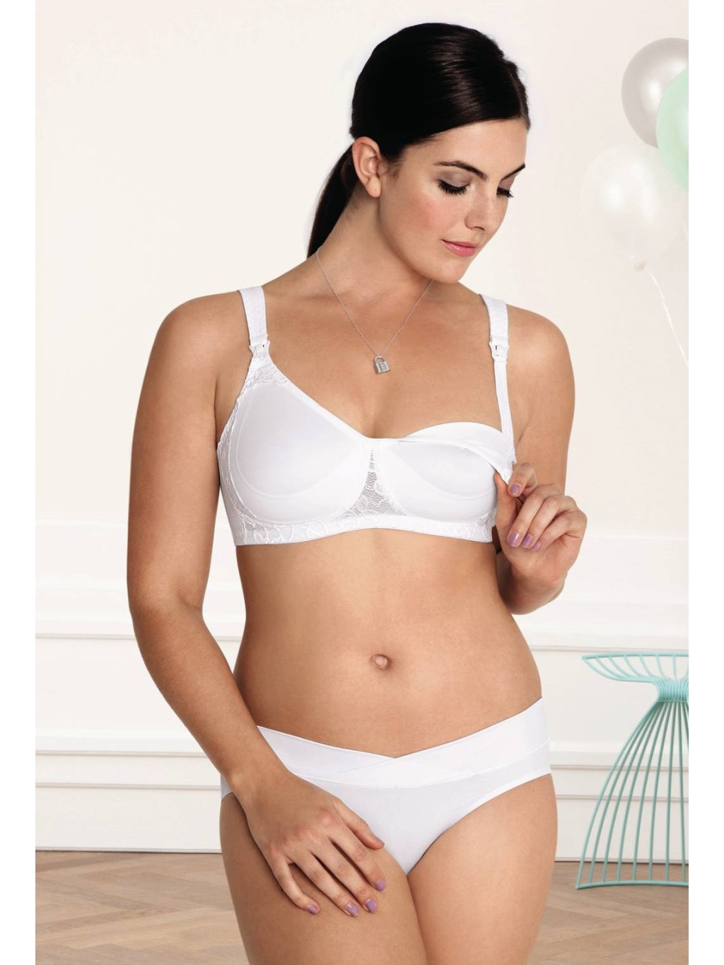 Kojící podprsenka bez kostic Basic bílá s krajkou