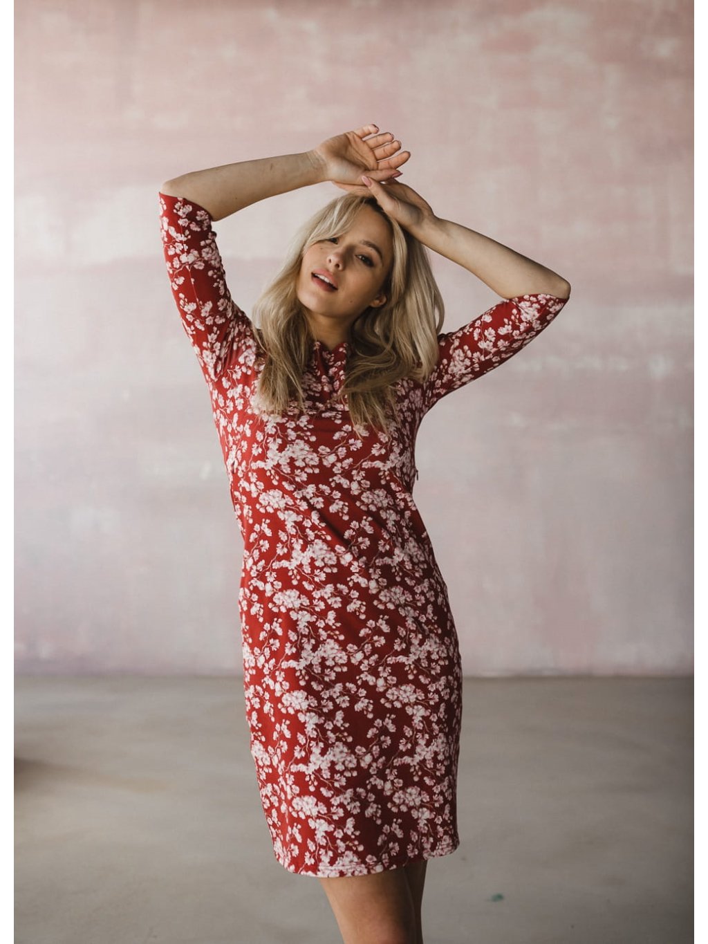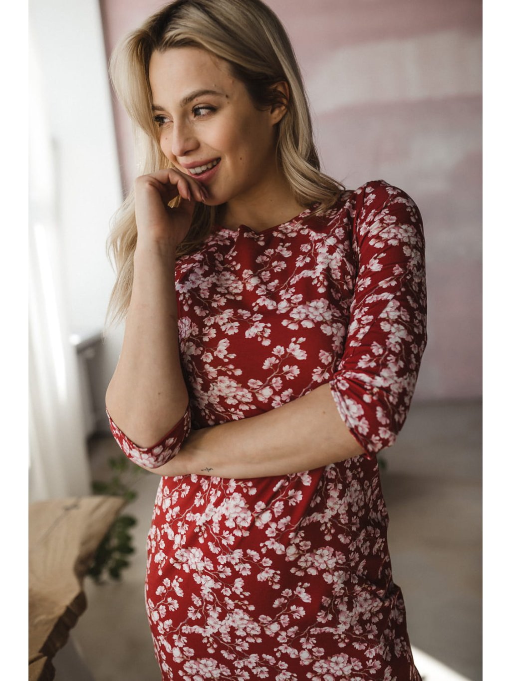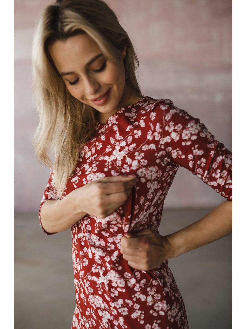 Kojící šaty Milky Dress bordó s kvítky bavlněné 3/4 rukáv