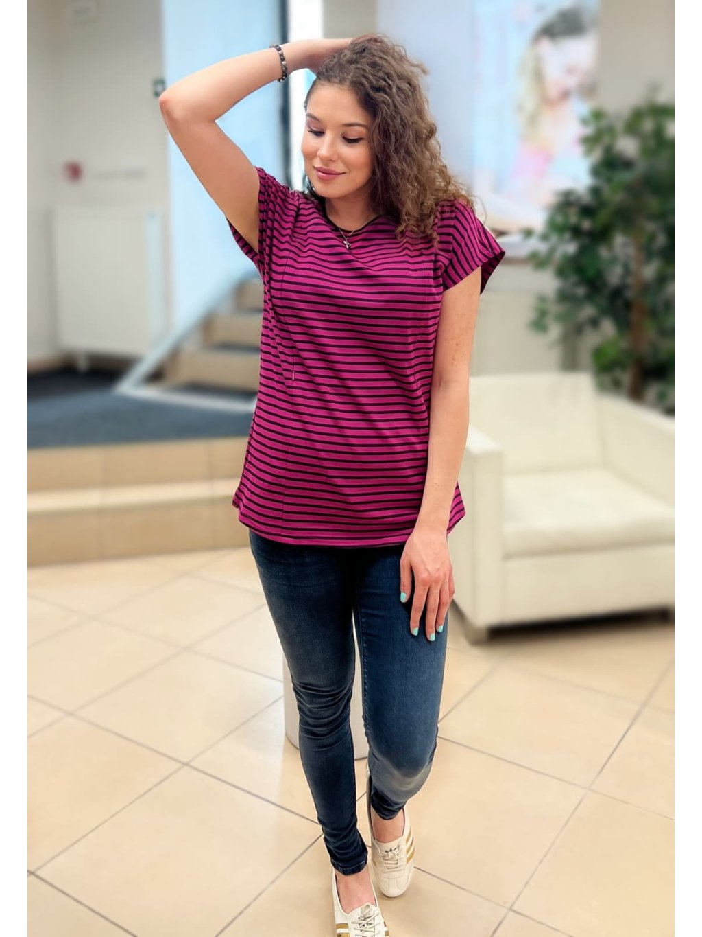 Kojící tričko se zipy Loren fuchsie s černými proužky bavlněné