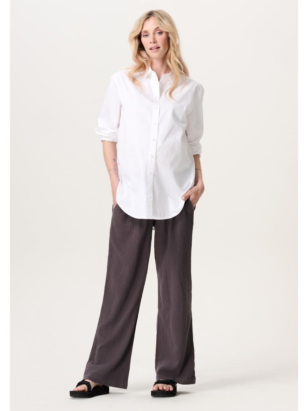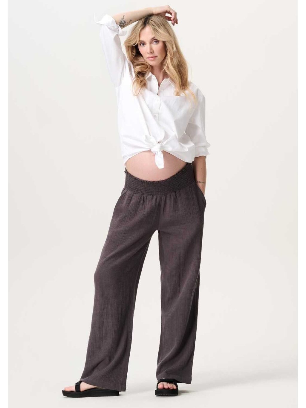 Tyto ležérní těhotenské kalhoty v odstínu šedé Forged Iron jsou navrženy tak, aby poskytly maximální pohodlí v každé fázi těhotenství i po něm. Lehká a prodyšná 100% bavlna zajišťuje příjemný pocit na těle, zatímco volný střih a široké nohavice dodávají vzdušnost a volnost pohybu.