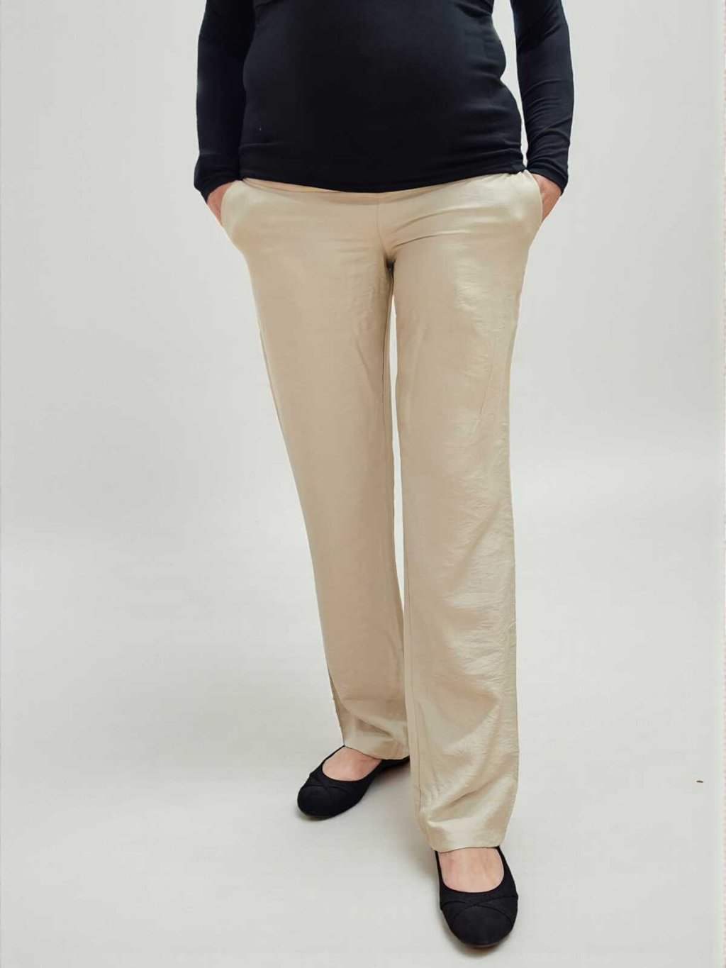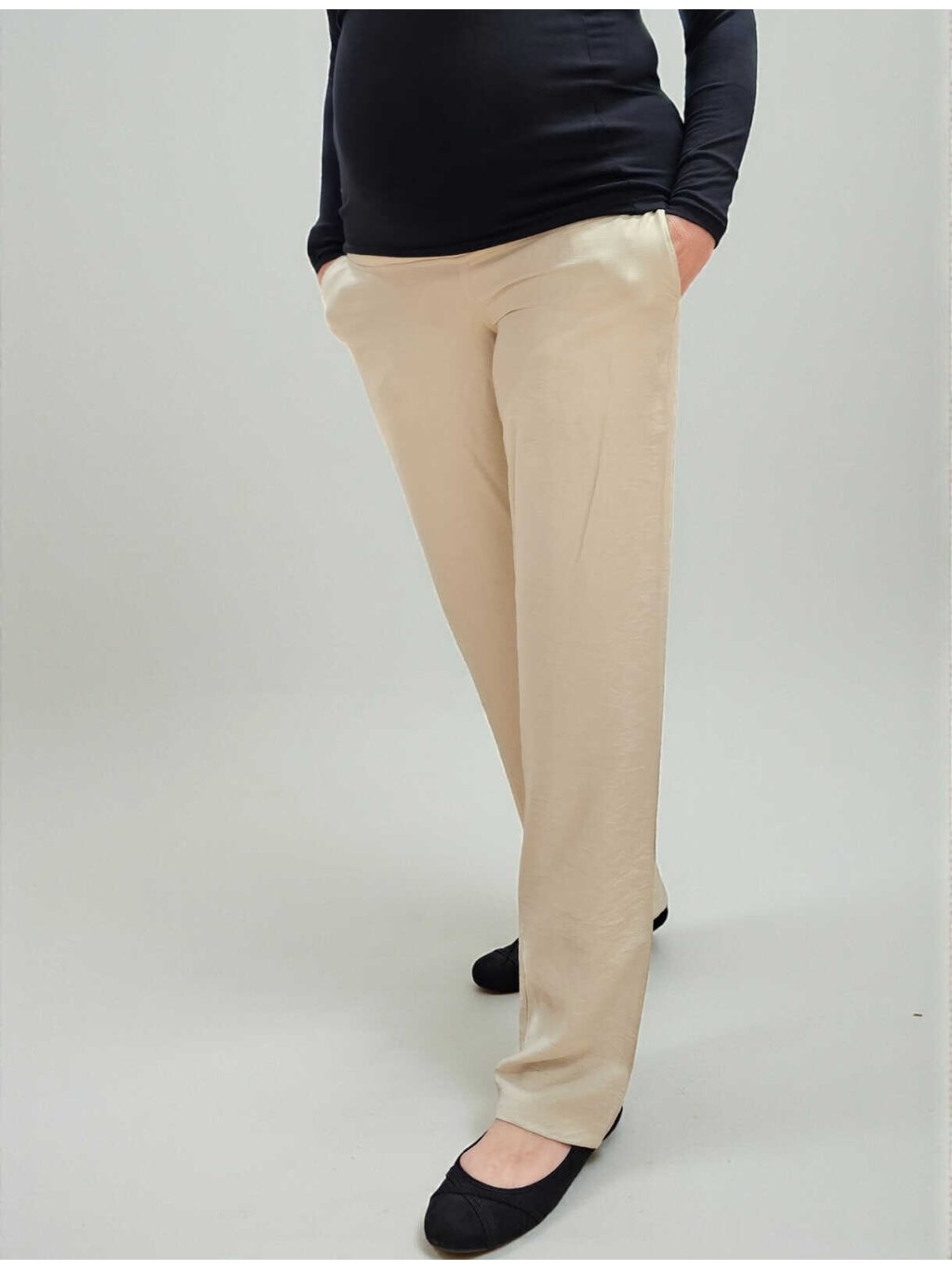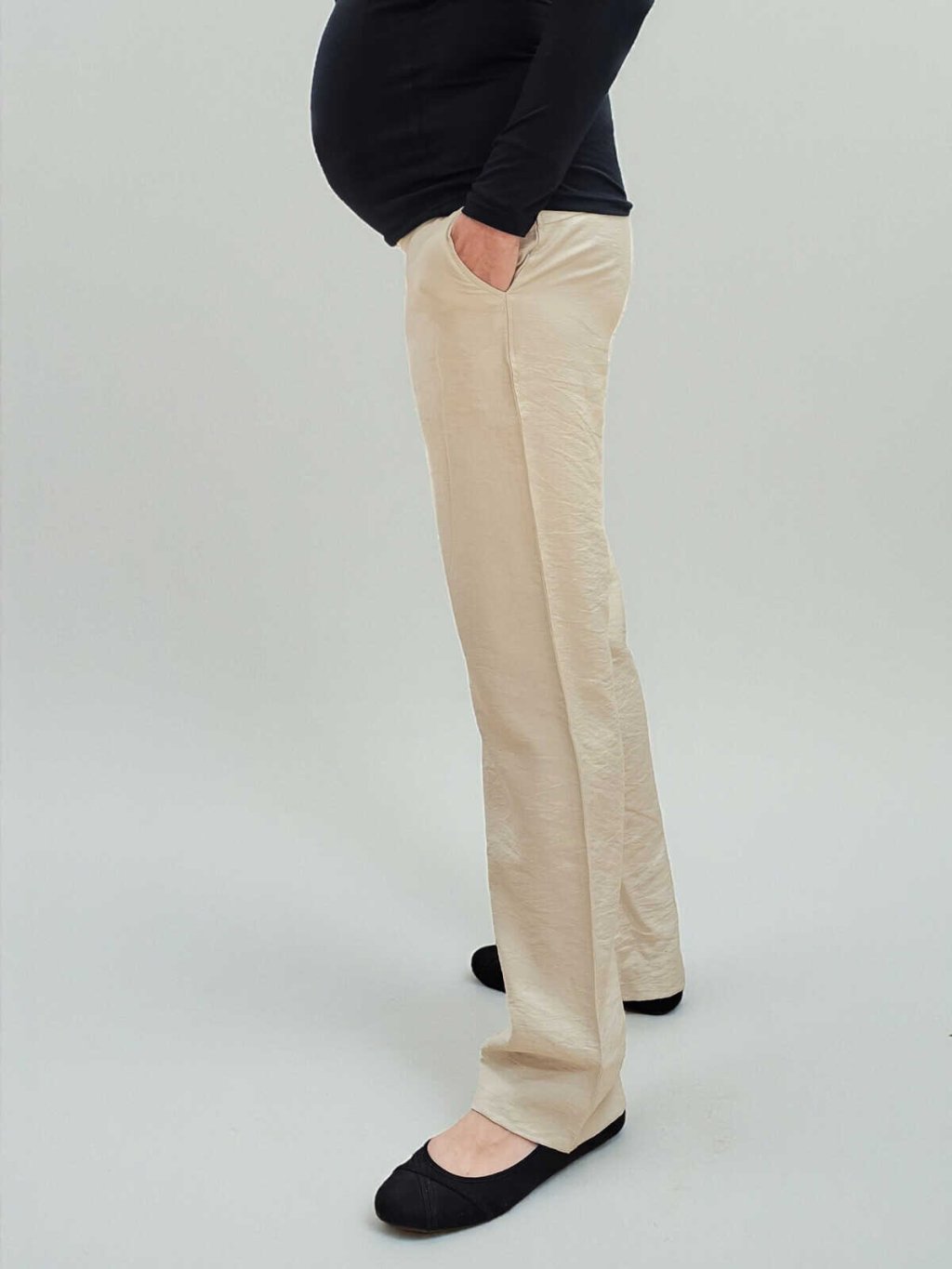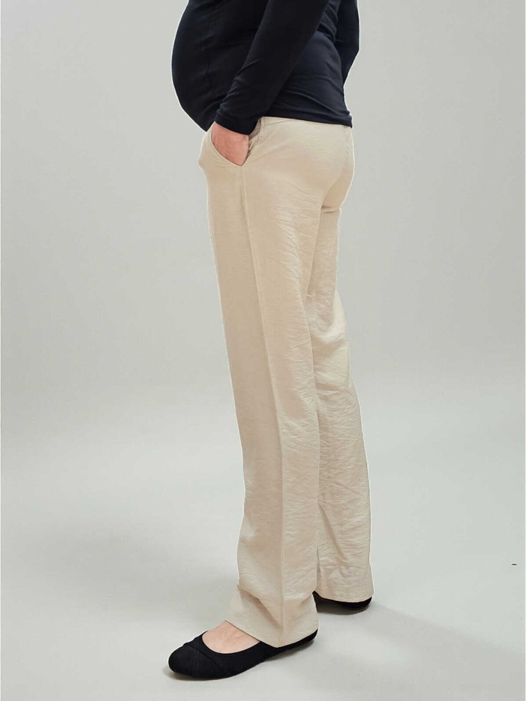 Lněné těhotenské kalhoty Elen - světle béžové