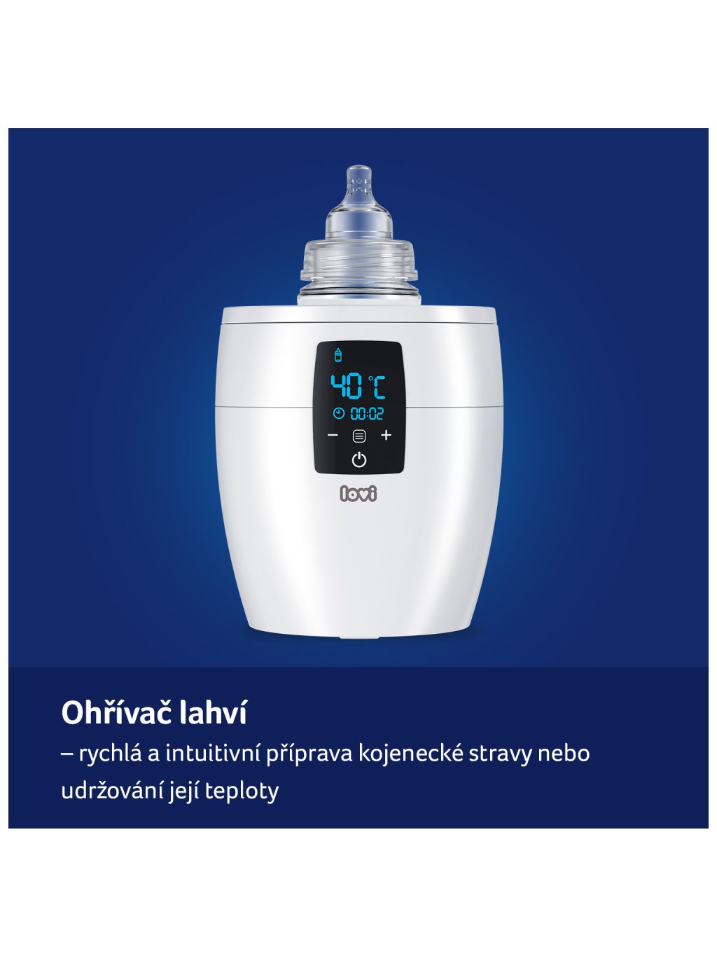 Ohřívač Lovi představuje ideální a bezpečný způsob ohřívání pokrmu. Obsahuje termostat, který udržuje nastavenou teplotu velmi dlouhou dobu. Chrání pokrm před přehřátím a ztrátou cenných vitamínů a minerálů. Superrychlý ohřívač LOVI automaticky nastaví dobu ohřevu pokrmu bez ohledu na to, zda je pokrm chlazený, zmrazený nebo pokojové teploty.