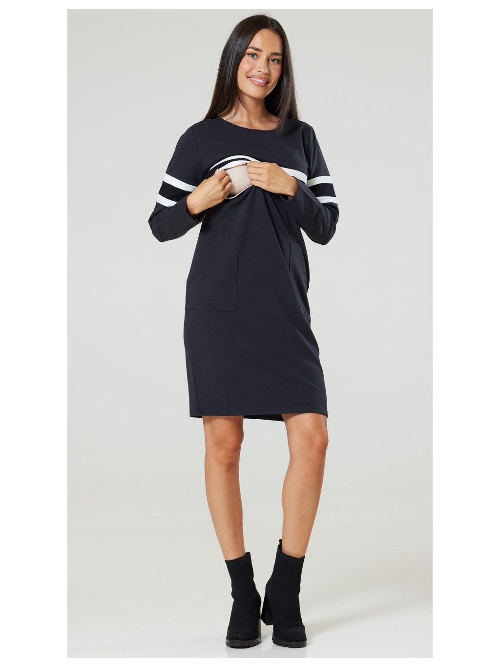 Mikinové těhotenské a kojící šaty 3v1 Claudia grafitové bavlněné