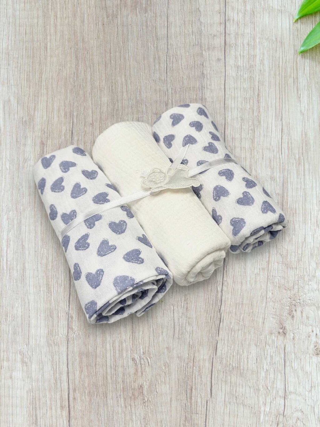 Sada tří mušelínových plenek v jemných neutrálních tónech je ideální volbou pro každodenní péči o miminko. Plenky jsou vyrobeny z kvalitního mušelínu, který je mimořádně měkký, prodyšný a šetrný k citlivé dětské pokožce – vyrobený ze 100% bavlny.