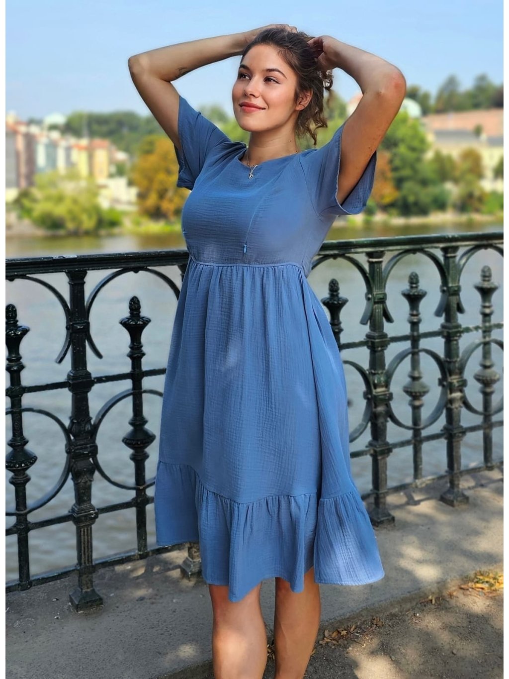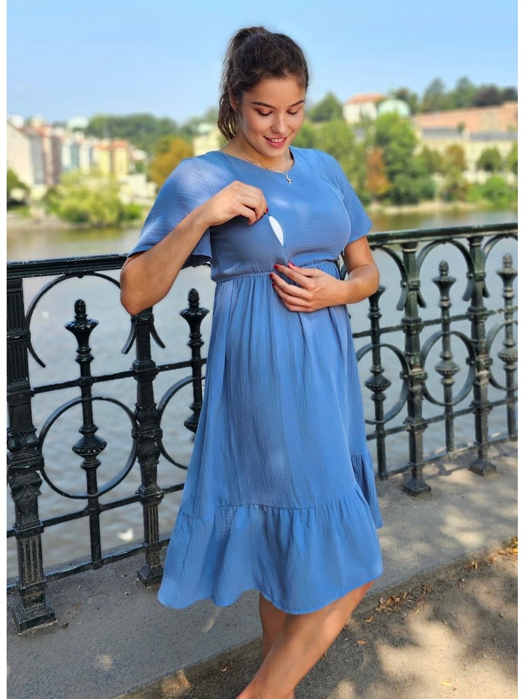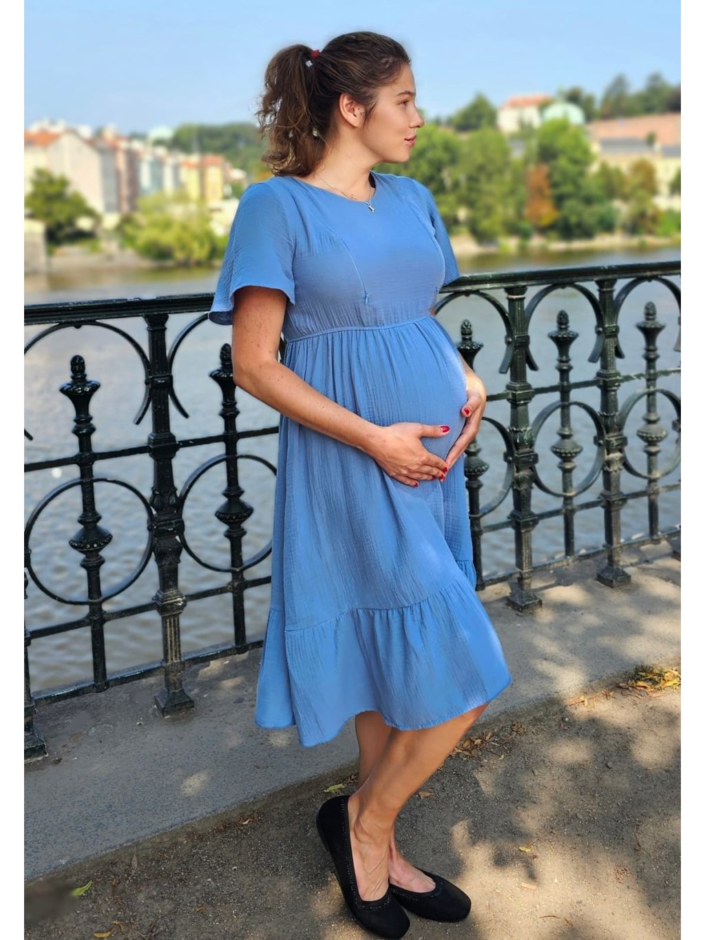 Mušelínové těhotenské a kojící šaty 3v1 Lory modré bavlněné