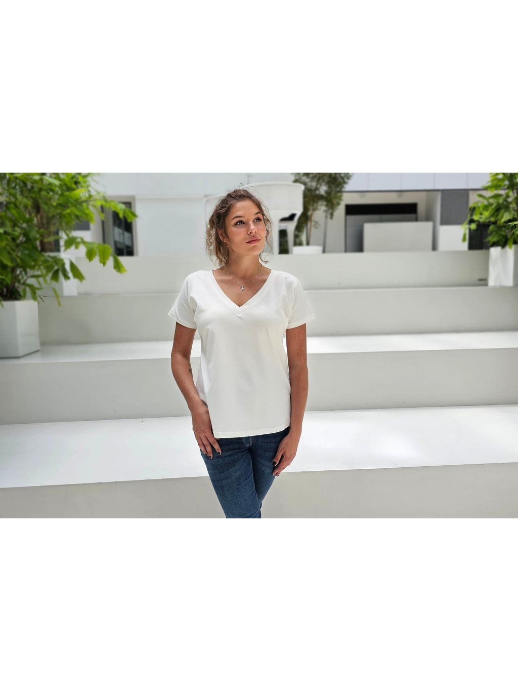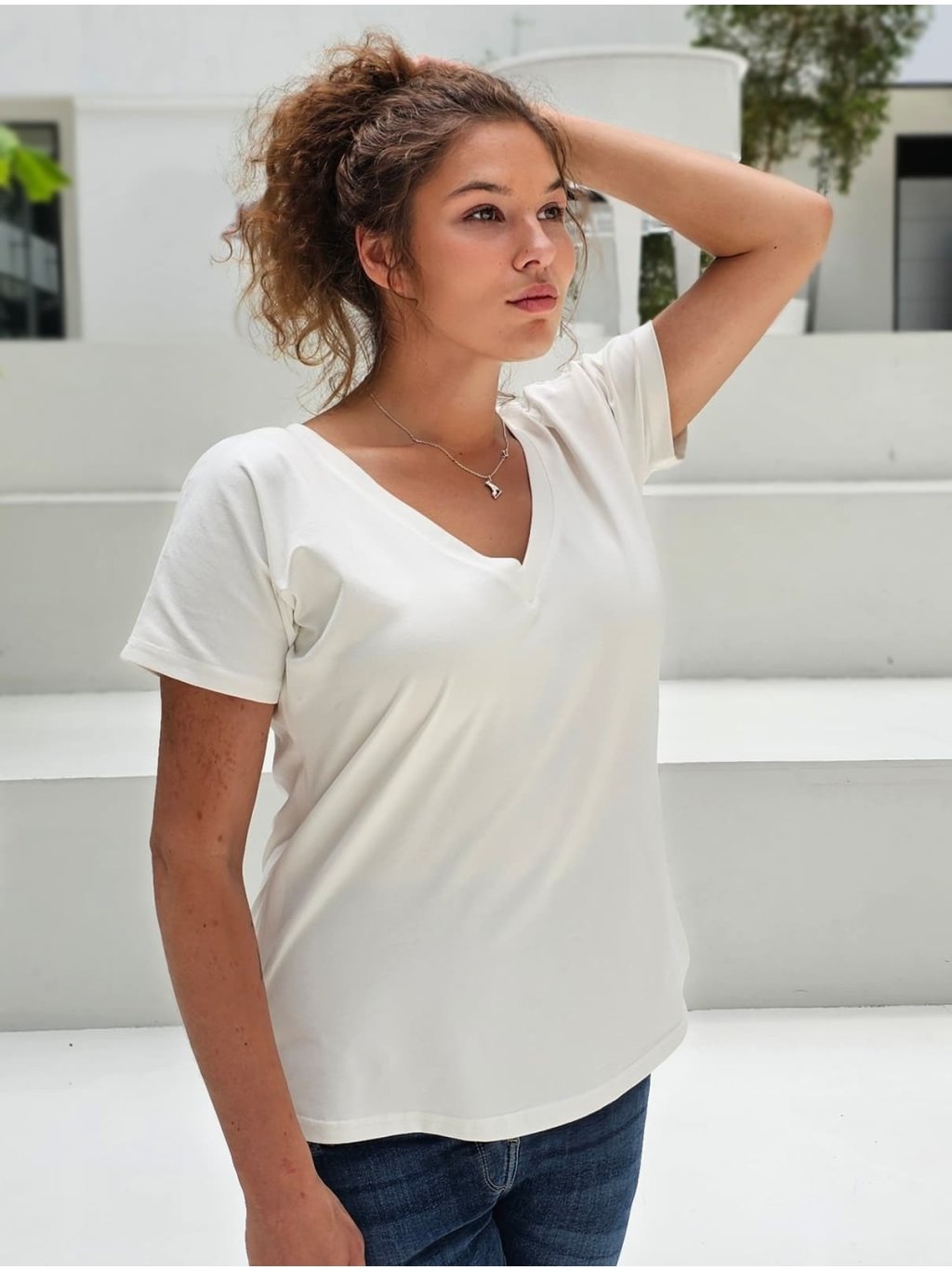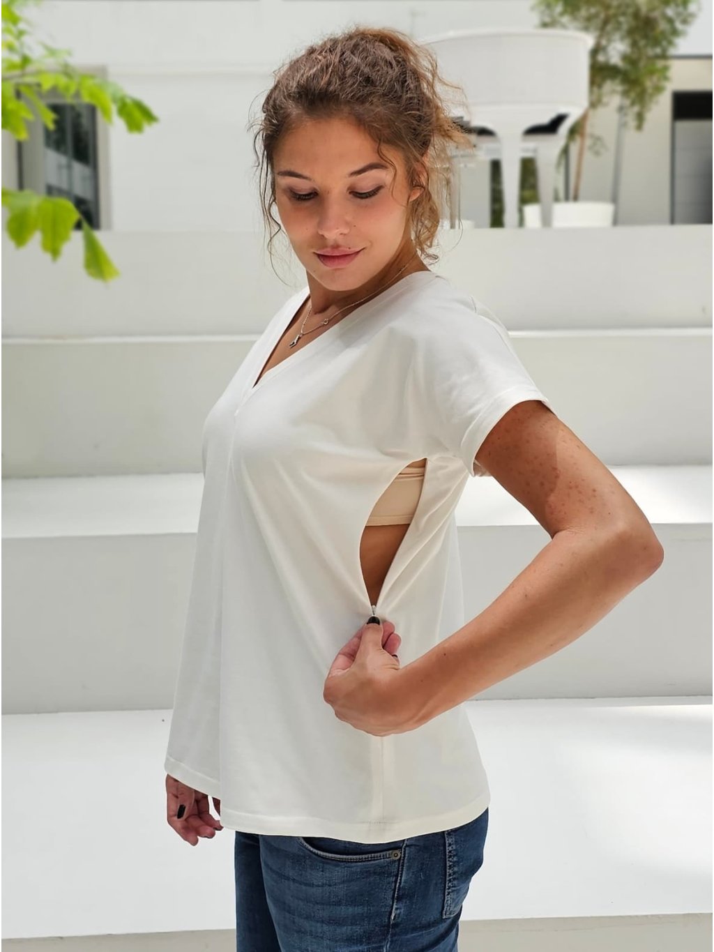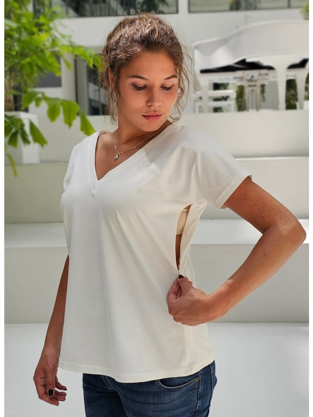 Těhotenské a kojicí tričko Walis – smetanově bílé (ecru), oboustranné, bavlna, krátký rukáv