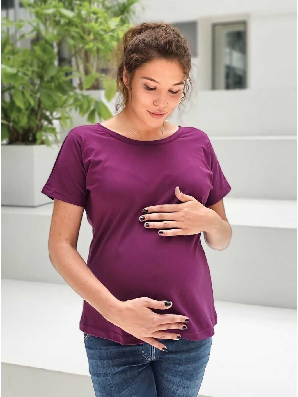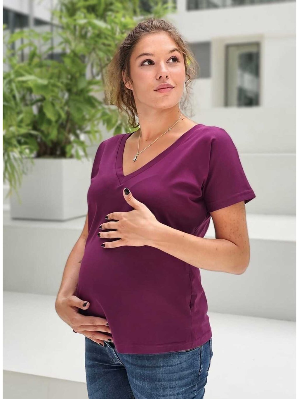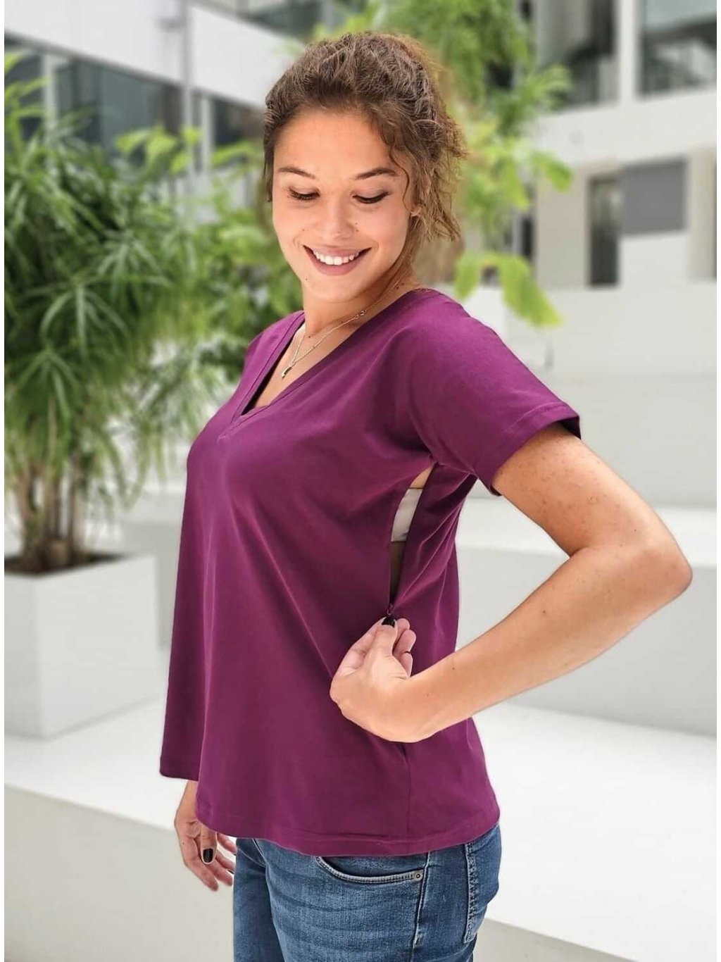 Těhotenské a kojicí tričko Walis – fialové, oboustranné, bavlna, krátký rukáv