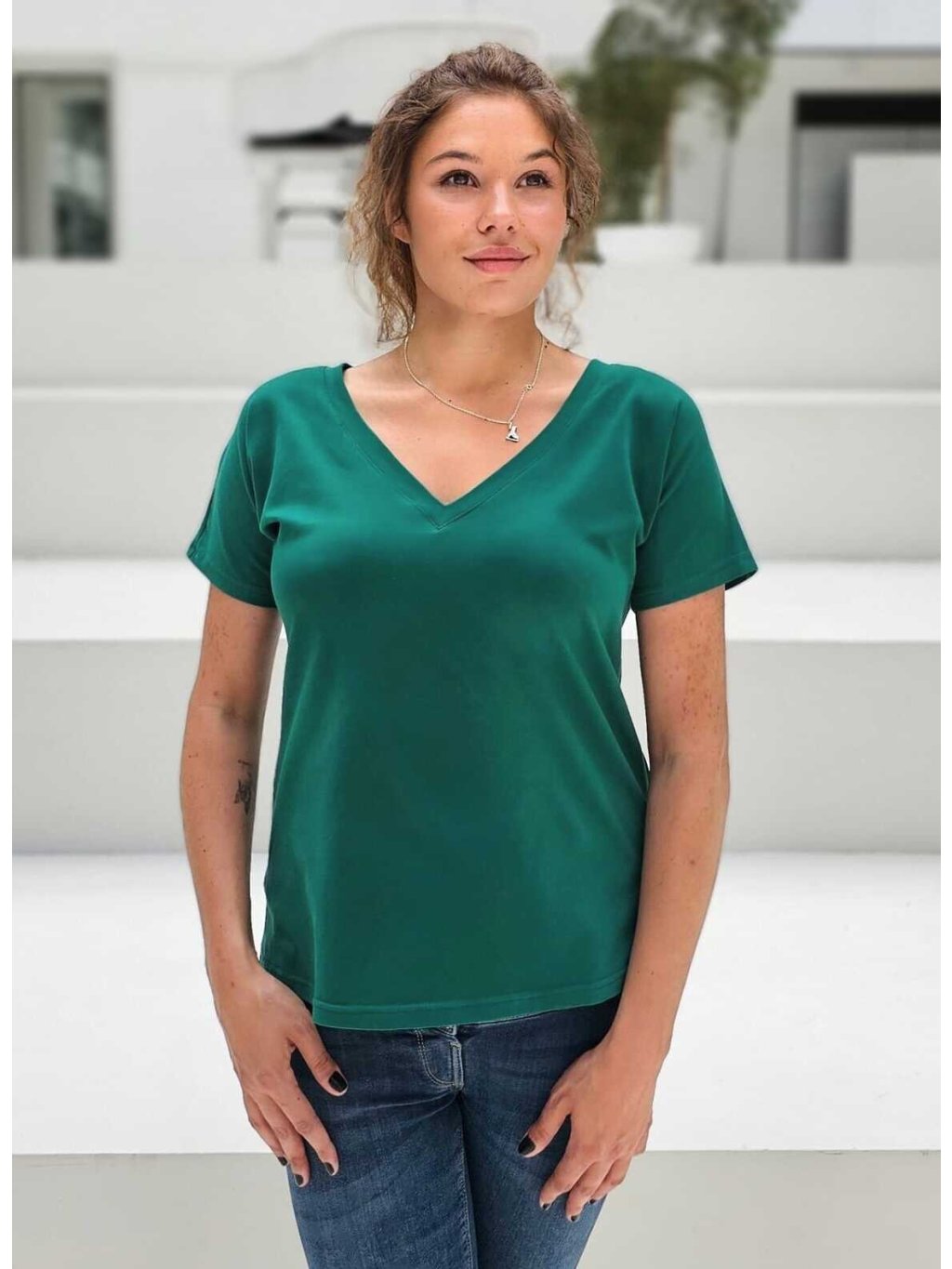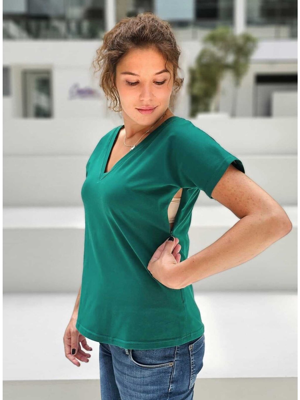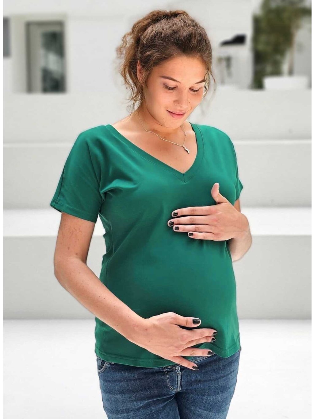 Těhotenské a kojicí tričko Walis – láhvově zelené, oboustranné, bavlna, krátký rukáv