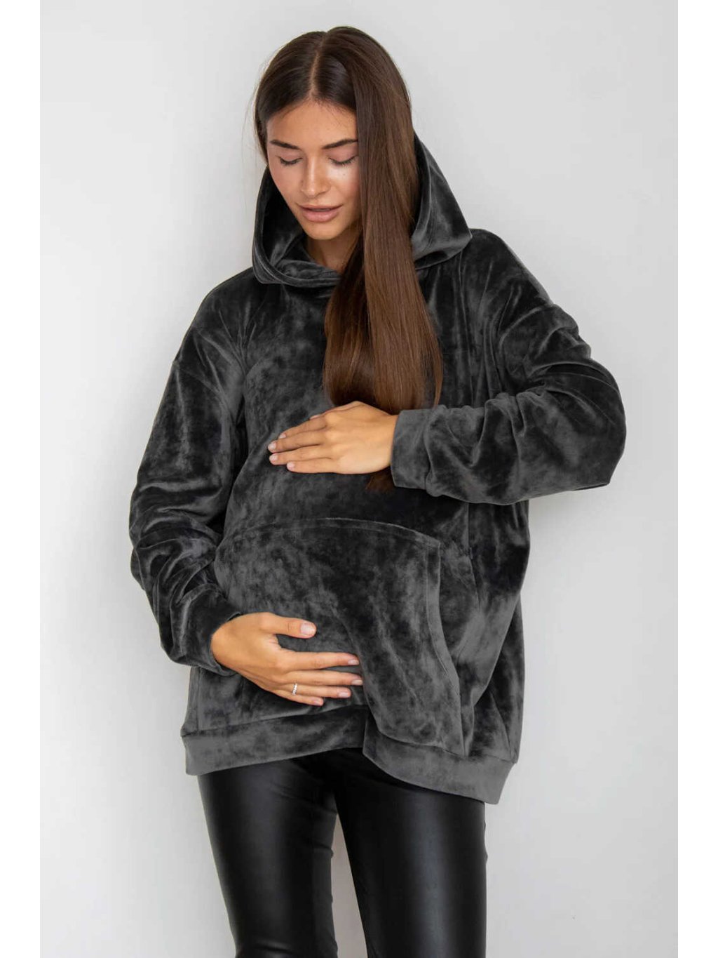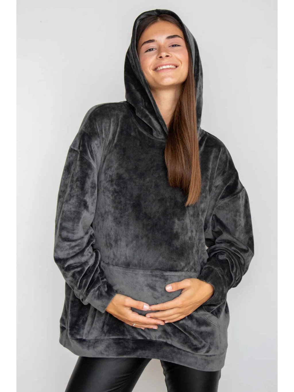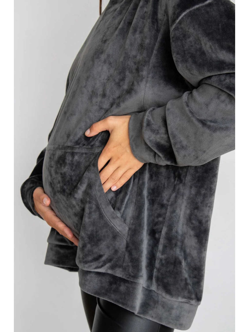 Oversize těhotenská a kojicí mikina Mida 3v1 - grafitová, hebký plyšový velur