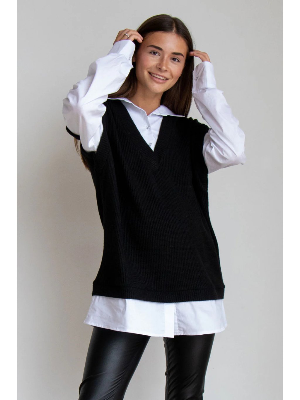 - 2v1 komplet – svetr bez rukávů + košile v jednom kuse