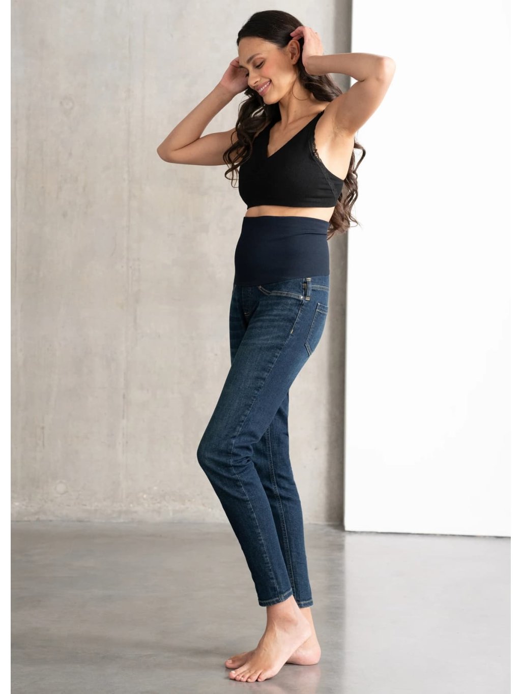 Poporodní tvarující džíny Roman – tmavě modré indigo, organická bavlna