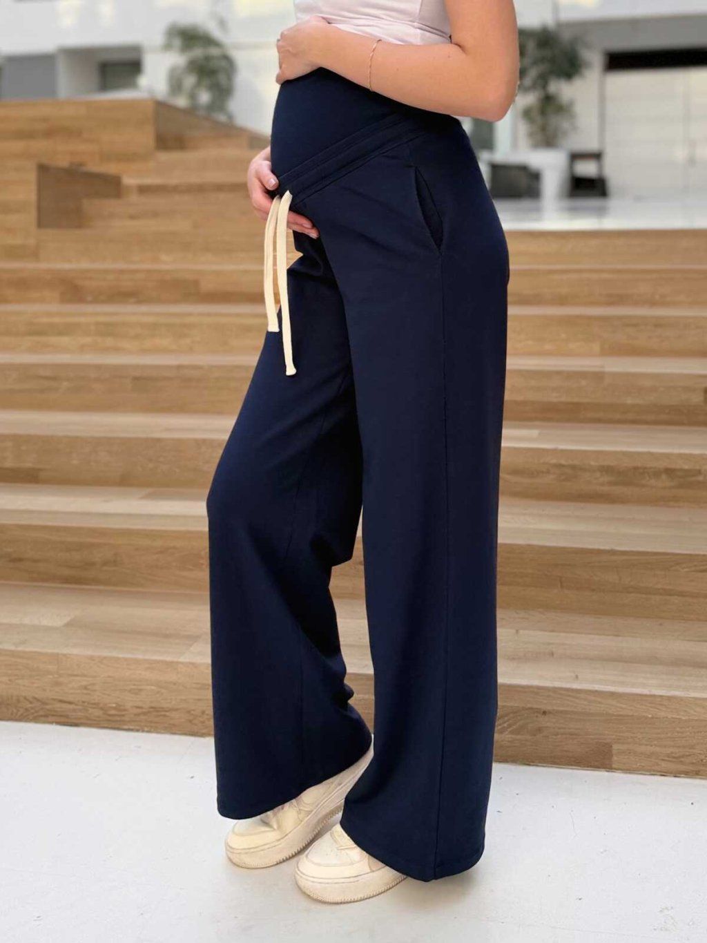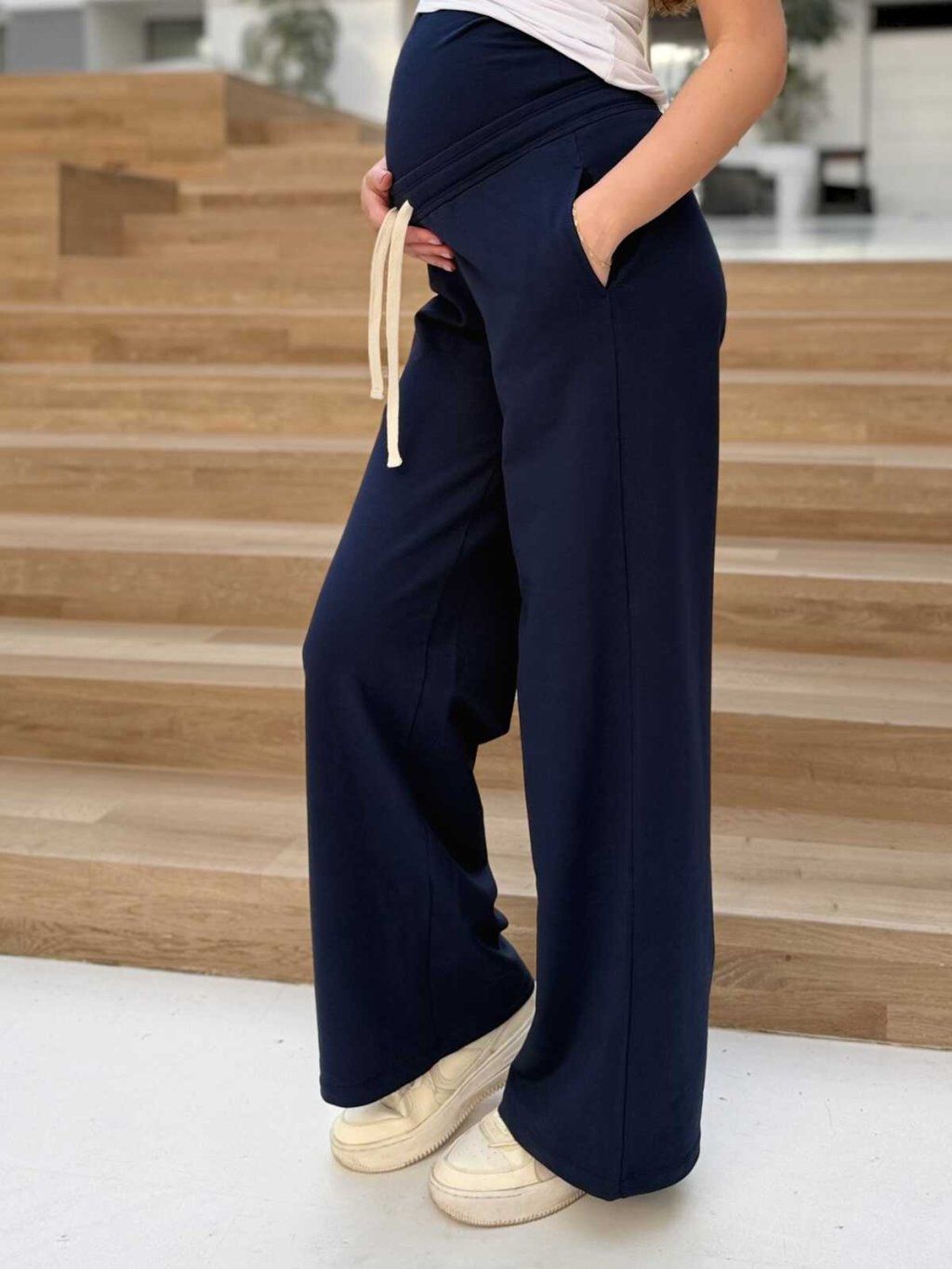 Široké těhotenské teplákové kalhoty Air Wide 2v1 – tmavě modré, bavlněné