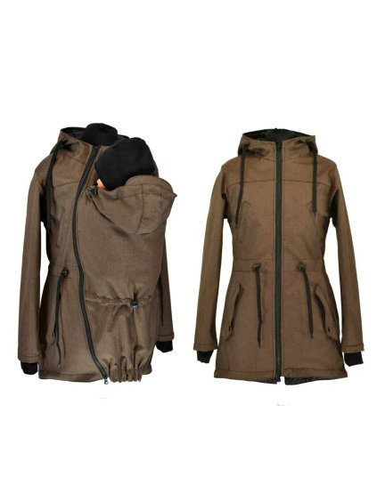 Univerzální parka pro těhotenství, nošení miminka i běžné dny Elegantní softshellová parka 2v1 s fleecem v krásné hnědé žíhané barvě. Dodává...
