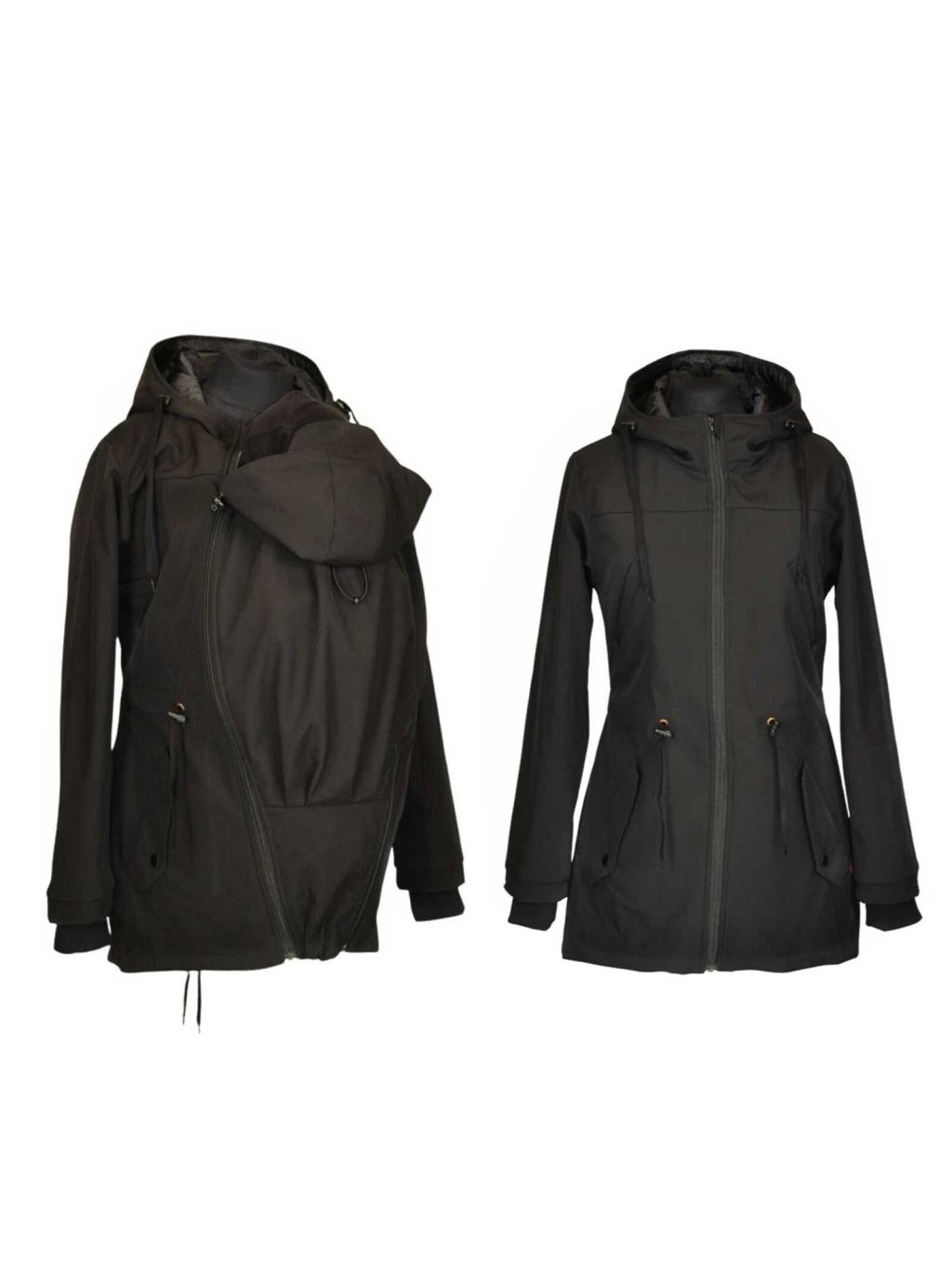 Univerzální parka pro těhotenství, nošení miminka i běžné dny Elegantní softshellová parka 2v1 v tmavě šedé žíhané barvě. Dodává se včetně nosící...