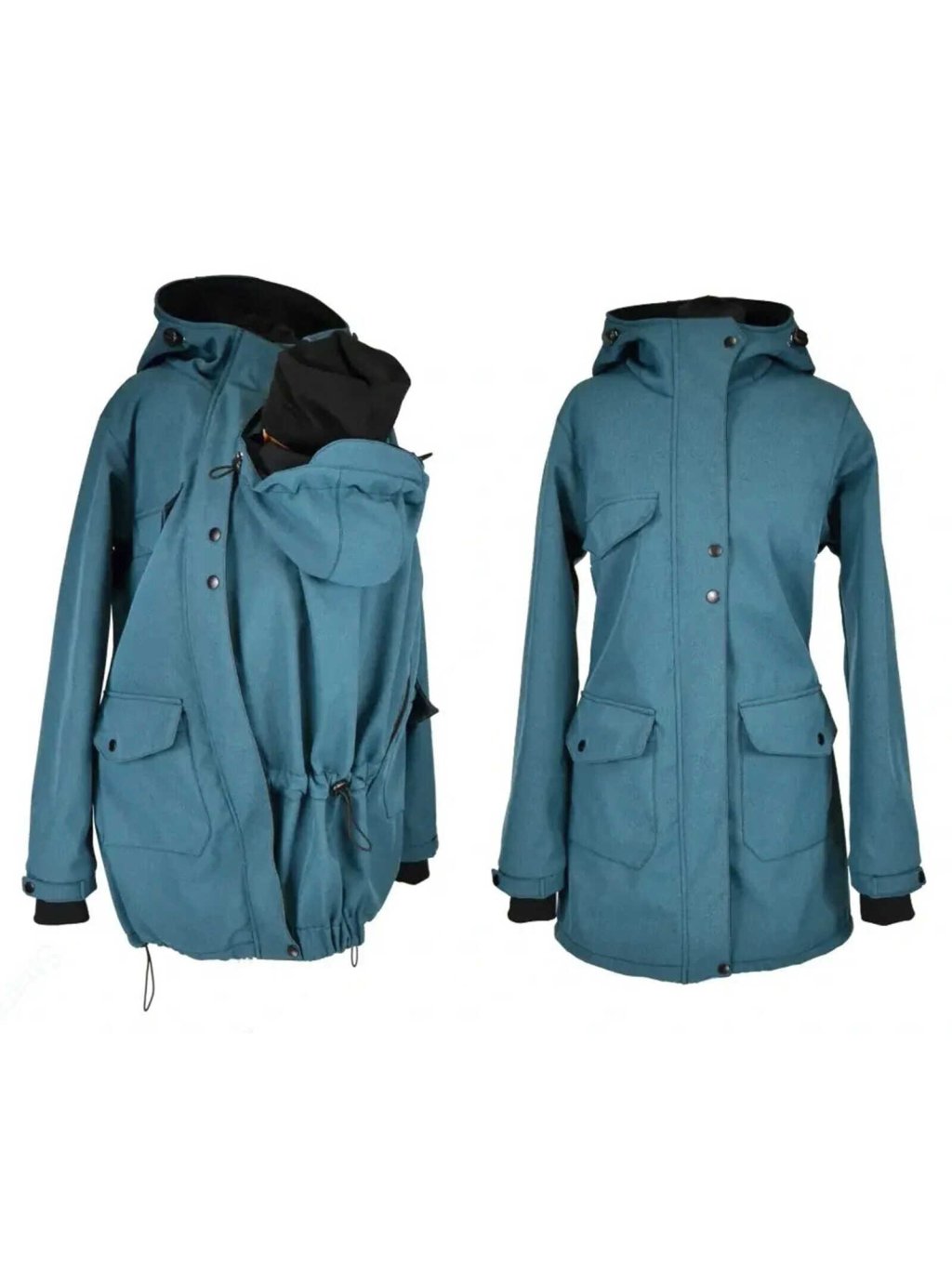 Univerzální parka pro těhotenství, nošení miminka i běžné dny Perfektní nosící softshellová parka 2v1 v petrolejové žíhané barvě. Dodává se...
