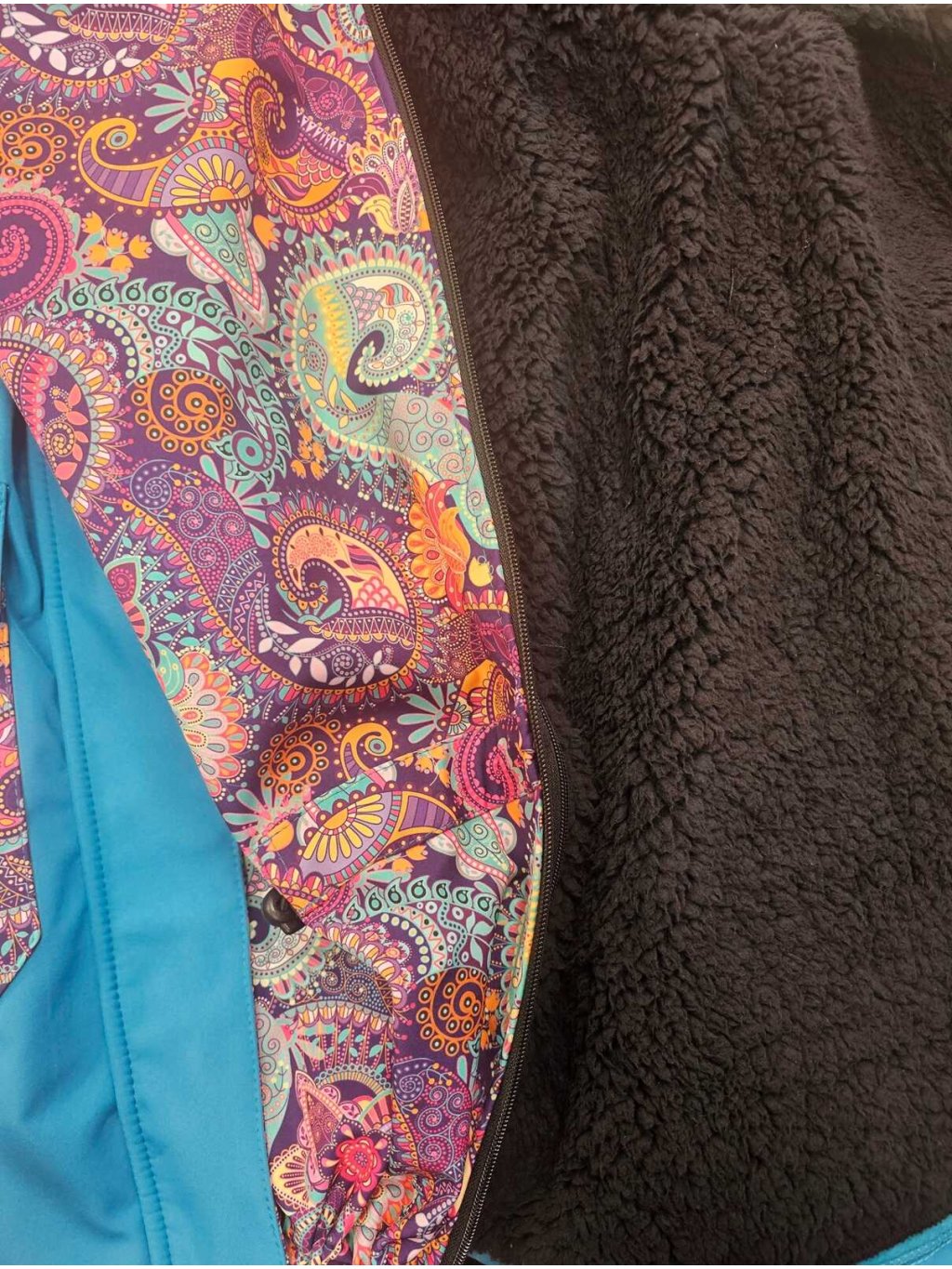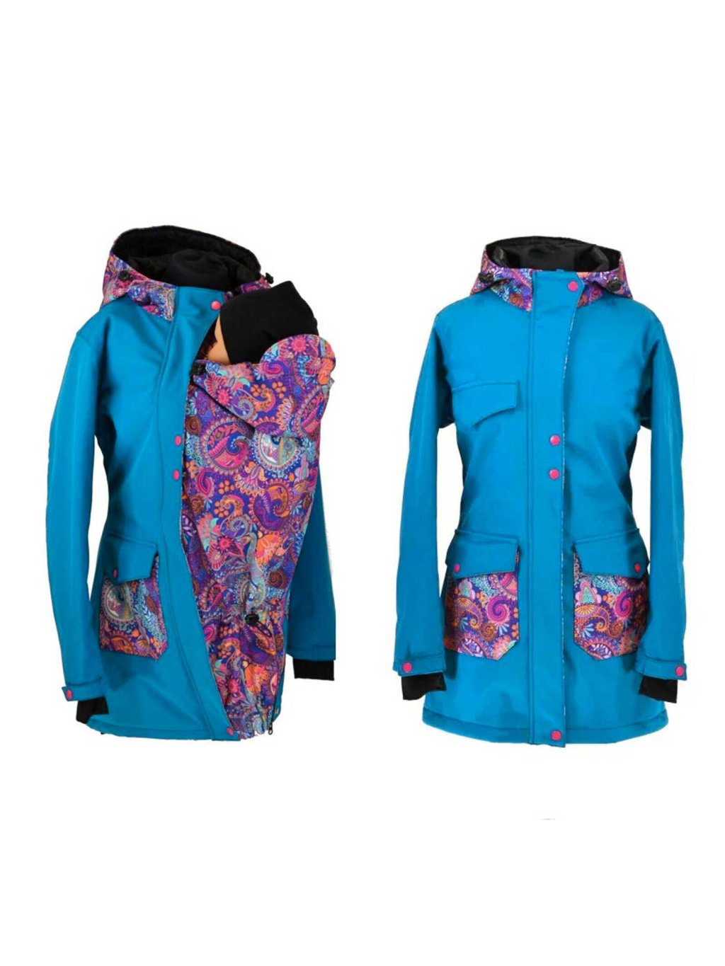 Softshellový nosící kabát s odepínacím beránkem 3v1 - petrolej/ornamenty