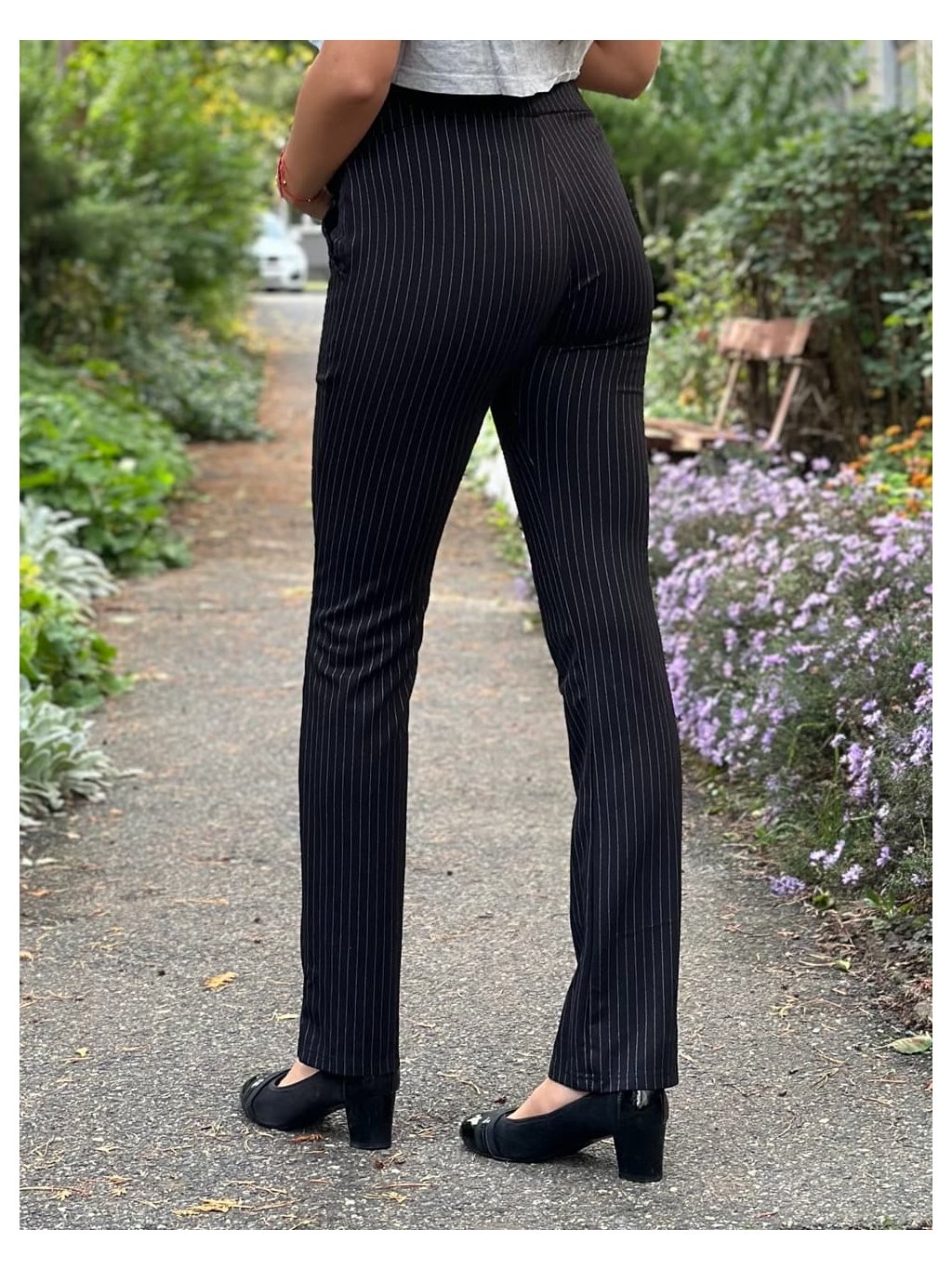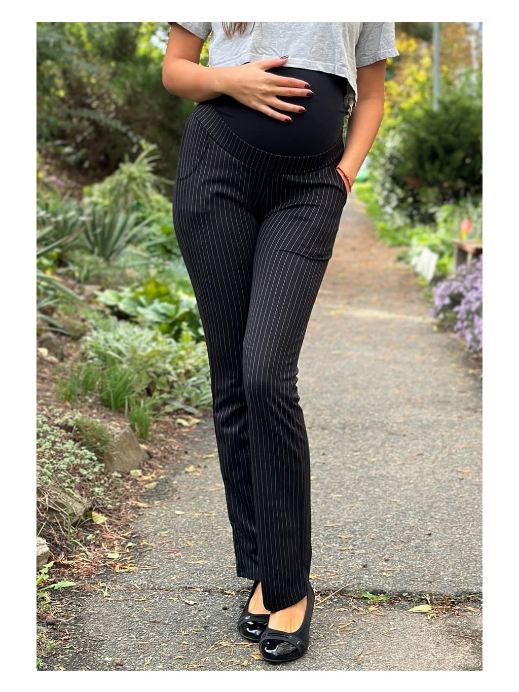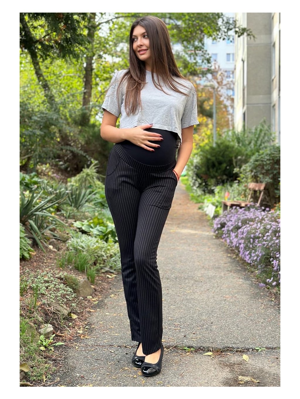 Těhotenské společenské kalhoty Tassimi – černé s jemnými proužky, rovný střih