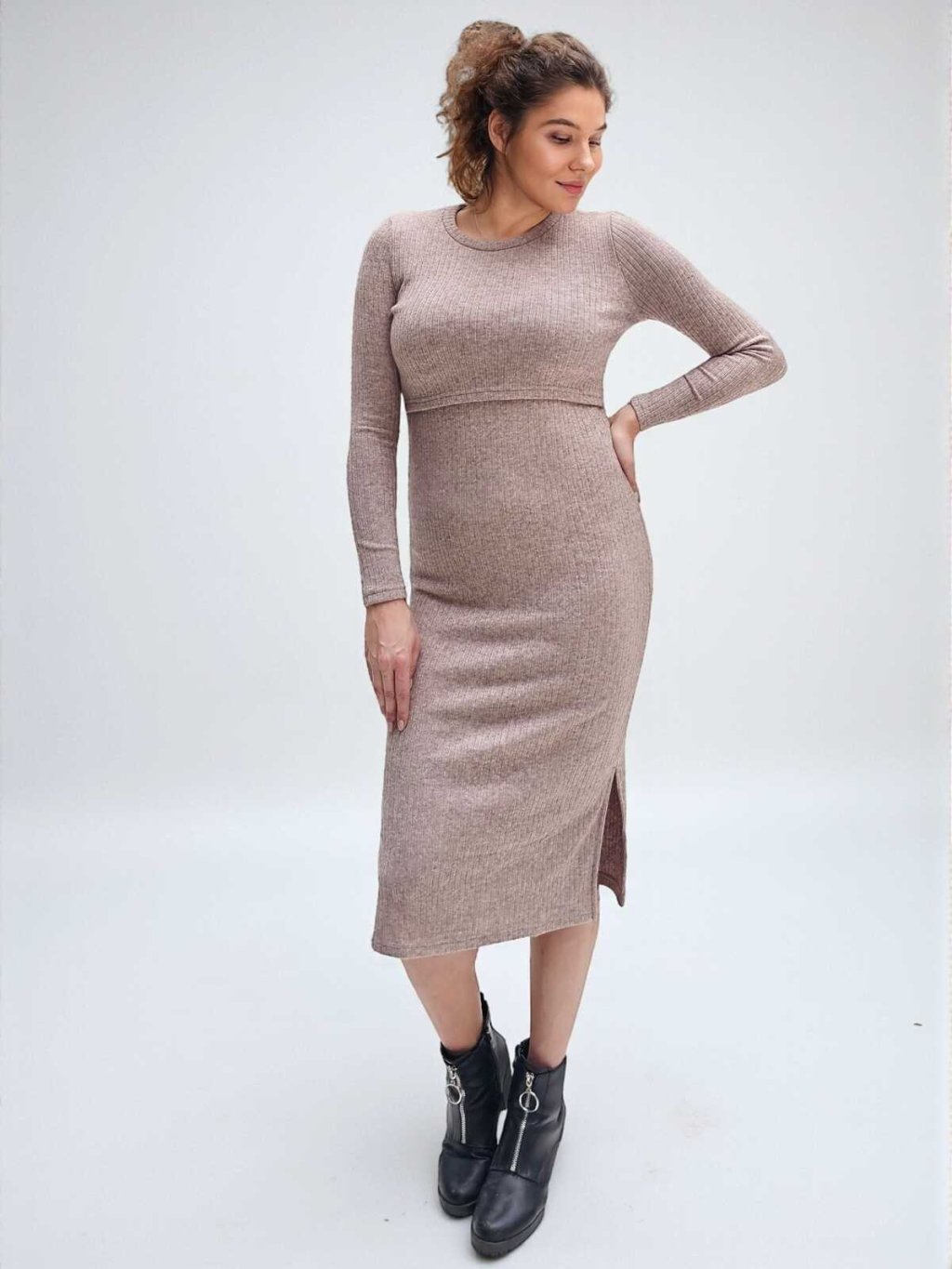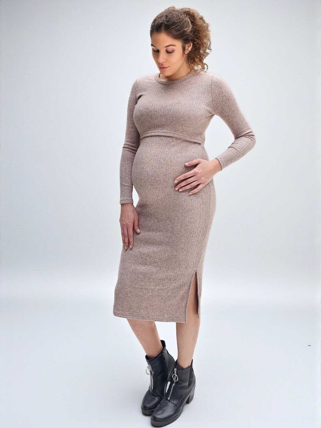 Svetrové těhotenské a kojicí šaty Amalya v moderním odstínu taupe melange jsou navržené tak, aby vás provázely celým obdobím mateřství. Pružný žebrovaný úplet se krásně přizpůsobí rostoucímu bříšku a zajistí pohodlí během těhotenství. Dlouhý rukáv a boční rozparek dodávají šatům elegantní vzhled i volnost pohybu.