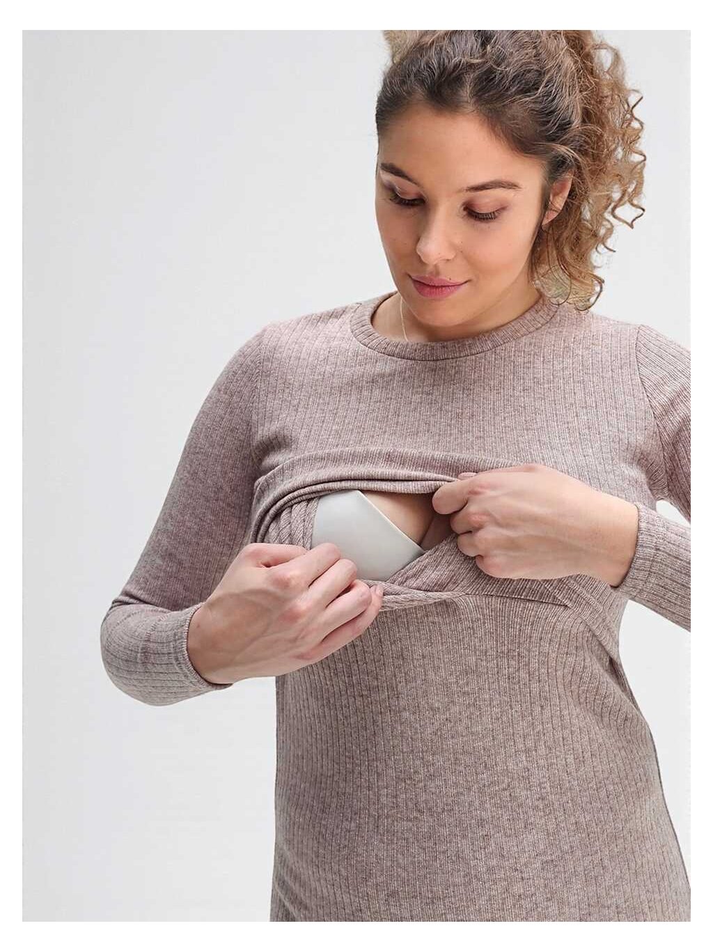 Svetrové těhotenské a kojicí šaty 3v1 Amalya – taupe melange, dlouhý rukáv