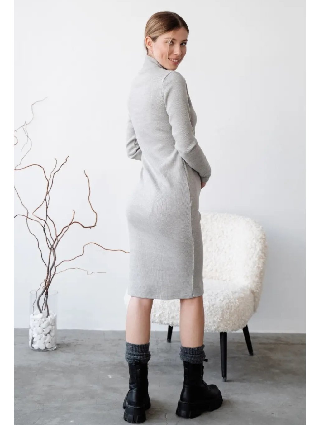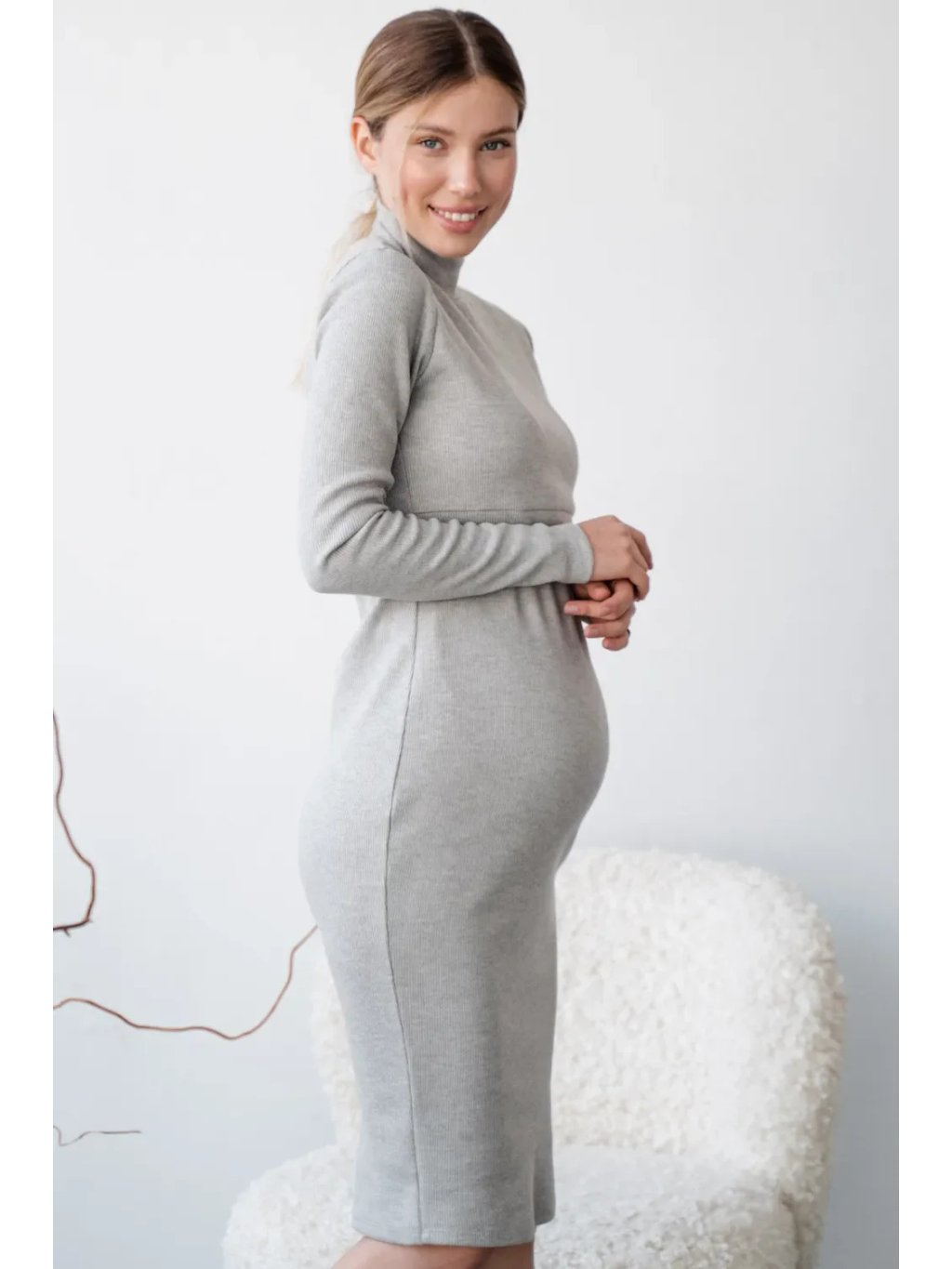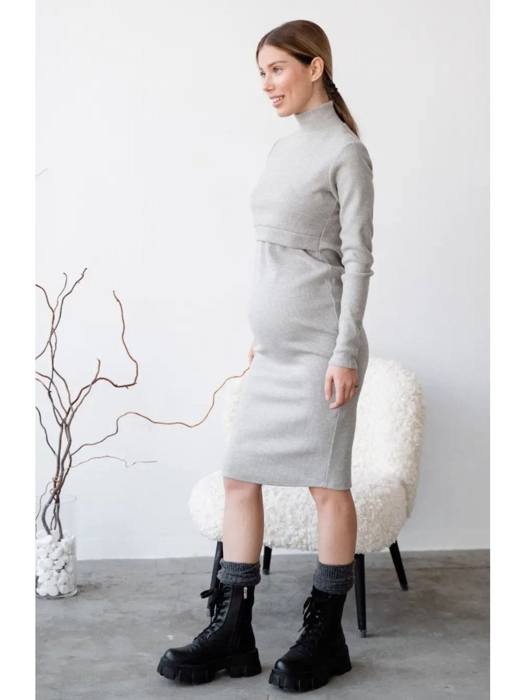 Svetrové těhotenské a kojicí šaty 3v1 Beate – světle šedé, dlouhý rukáv