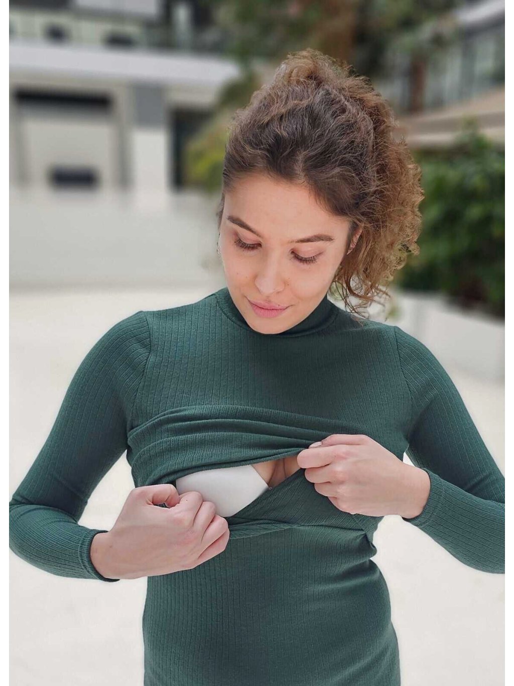 Svetrové těhotenské a kojicí šaty Adair Roll 3v1 – tmavě zelené