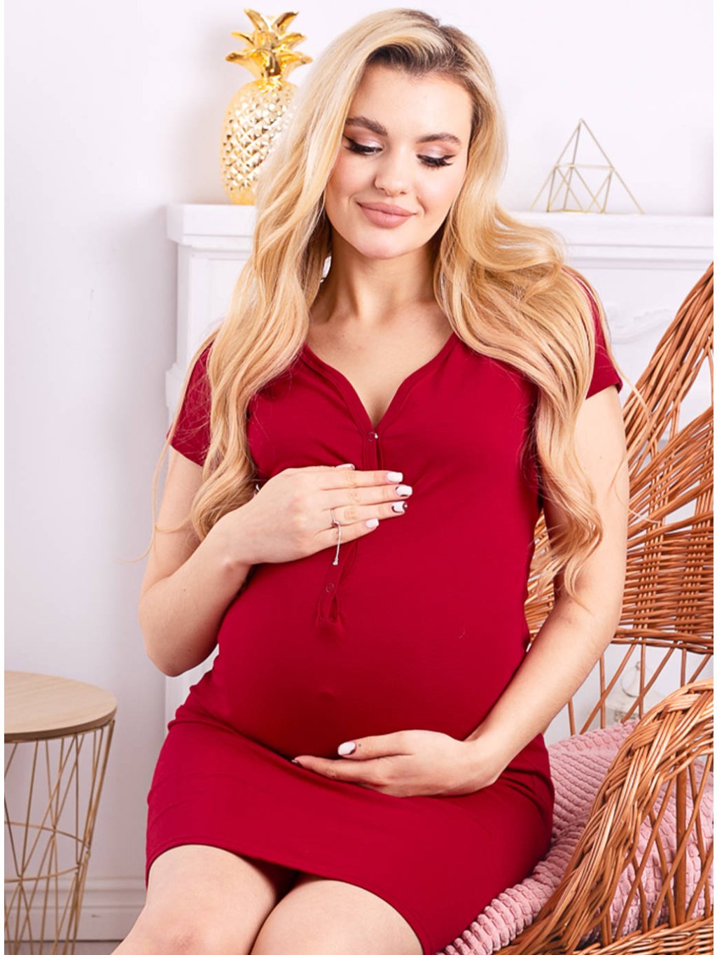 Těhotenská a kojící košile 3v1 bordó bavlněná